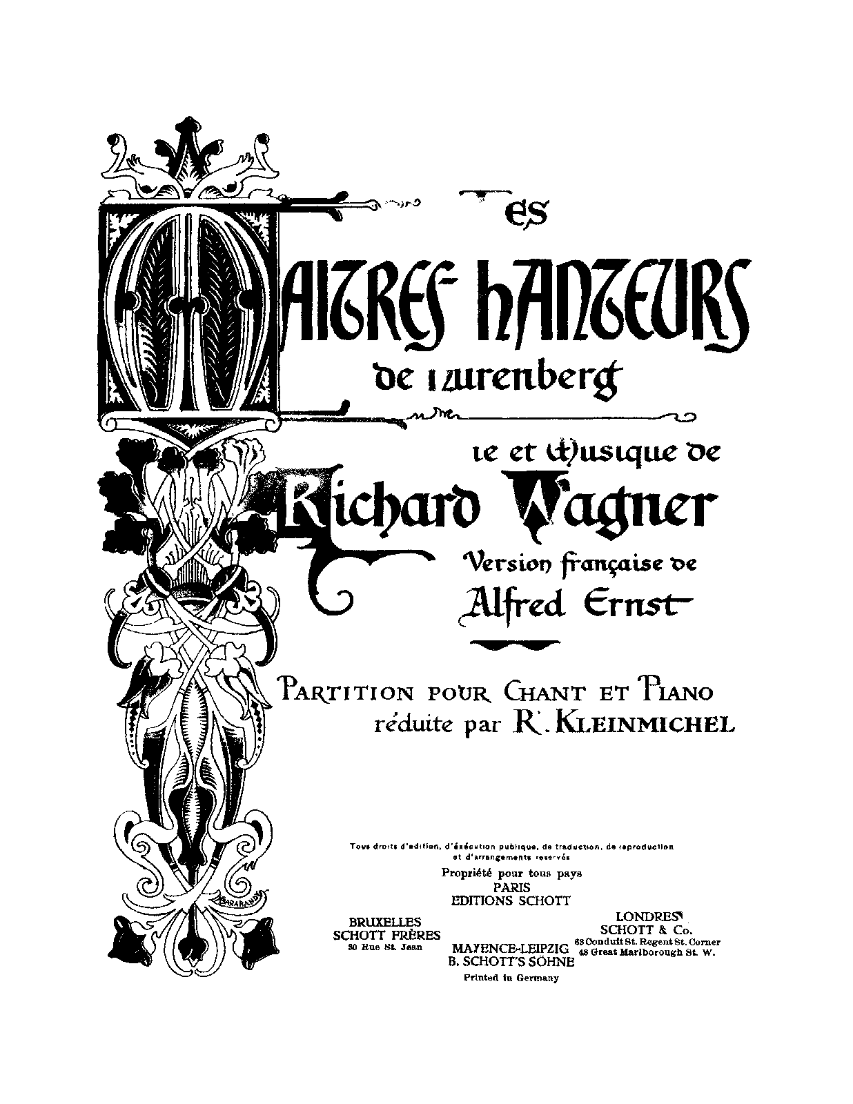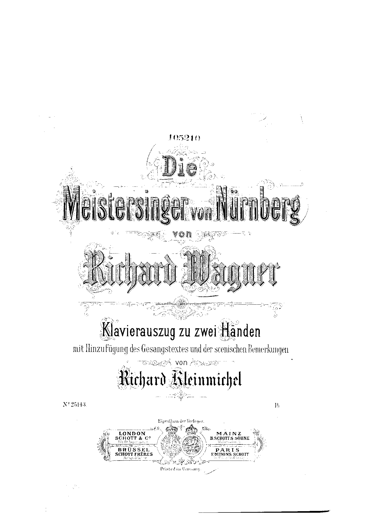 紐倫堡的工匠歌手; המייסטרזינגר מנירנברג; Les Maîtres Chanteurs de Nuremberg; Les Maitres Chanteurs de Nuremberg; Les maîtres chanteurs; Beckmesser; Die meistersinger von Nürnberg; Los maestros cantores de Nuremberg; Die Meistersinger von Nurnberg; Die Meistersänger von Nürnberg; Meistersänger von Nürnberg; Meistersinger von Nürnberg; ニュールンベルクのマイスタージンガー; Meistersinger; Meesterzangers; Die Meistersinger von Nuernberg; Os Mestres Cantores de Nurembergue; Mestres Cantores de Nuremberg; Os Mestres Cantores de Nuremberg; Os mestres cantores de Nuremberga; Нюрнбергские майстерзингеры; Maeștrii cântăreți din Nurnberg; Maeştrii cântăreţi din nürnberg; Die Meistersinger; Els mestres cantaires; Els mestres cantors de Nuremberg; Mestersangerne i Nyrnberg; Os mestres-cantores de Nuremberg