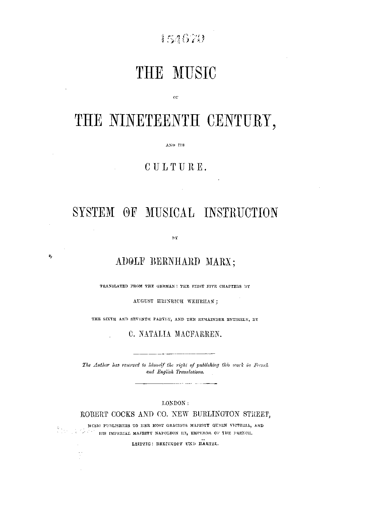 | Alternative. Title | Die Musik des neunzehnten Jahrhunderts und ihre Pflege – Methode der Musik The music of the nineteenth century, and its culture. System of musical instruction |