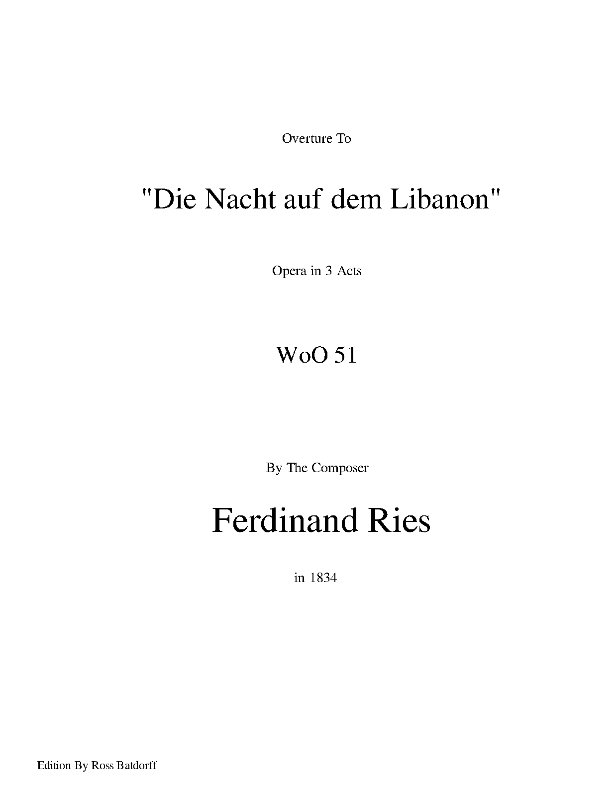 | Manuscript Sources | D-B Mus.ms. 18529 (full score), D-B Mus.ms. 18529/1 (full score), D-B Mus.ms.autogr. Ries, F.5 N (vocal score) |