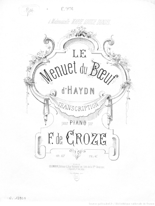 Der Kapellmeister und der Ochsenhändler, oder Die Ochsenmenuett; Haydn und der Ochsenhändler Die Ochsenmenuet ; Menuet du Boeuf ; Menuetto del Bove