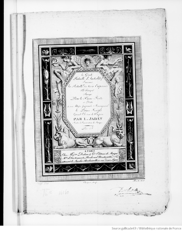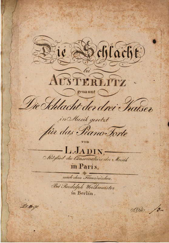 Die Schlacht bei Austerlitz, genannt die Schlacht der drei Kaiser, in Musik gesetzt für das Piano-Forte; La grande bataille d'Austerlitz, surnommée la bataille des 3 Empereurs, fait historique arrangé pour le piano-forte