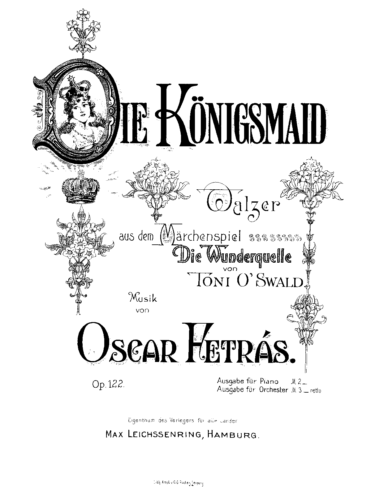 | Librettist | Antonia Helene O'Swald (1866–1949) as Toni O'Swald |