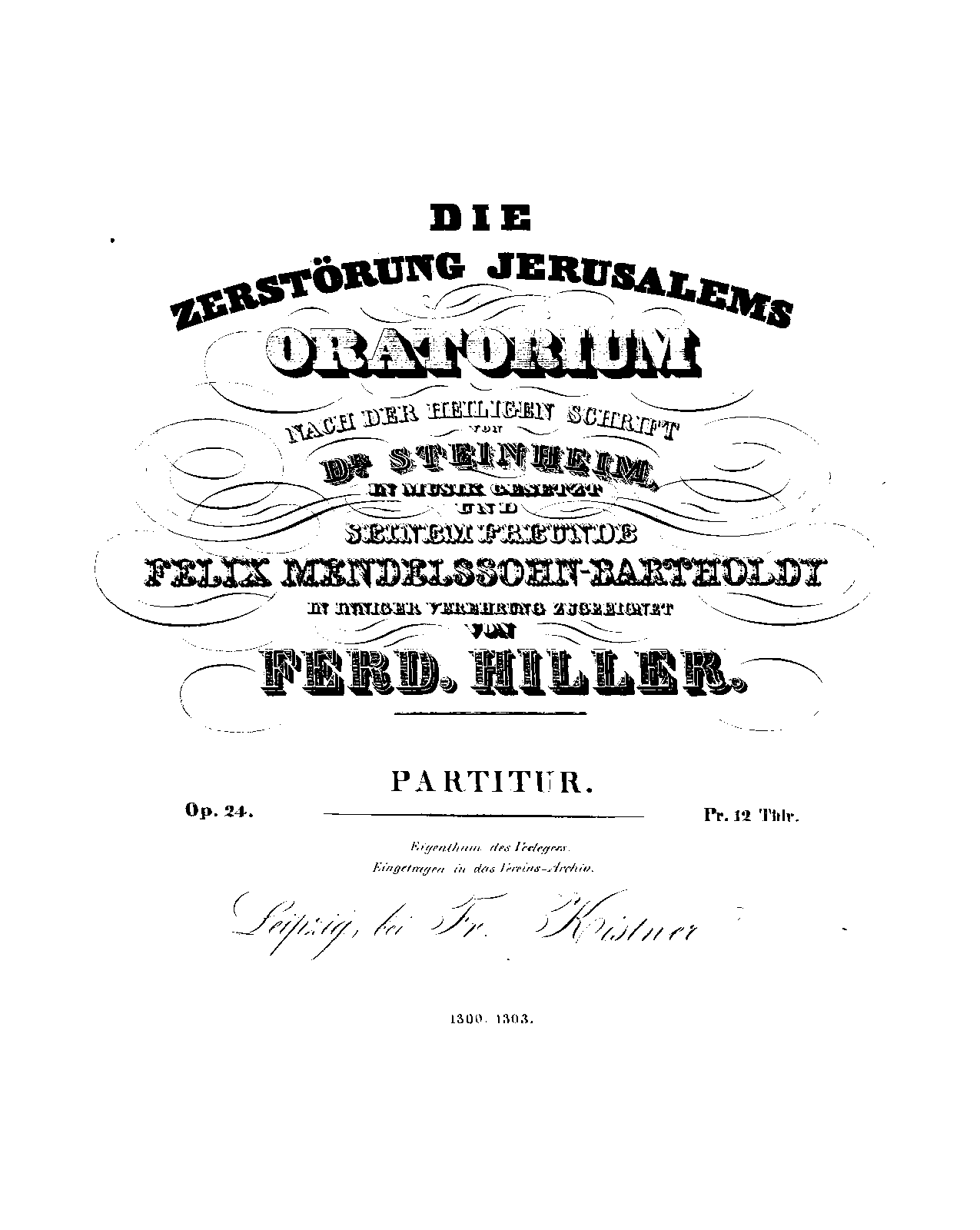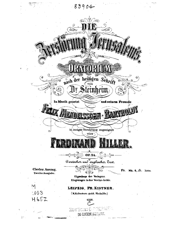 | Alternative. Title | Oratorium nach der heiligen Schrift von Dr. Steinheim |