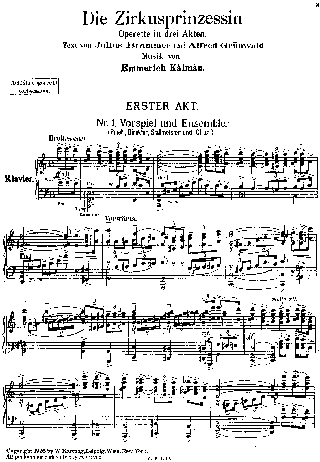 | First Performance. | 1926-03-26 in Vienna, Theater an de Wien |