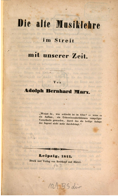 | Work Title | Die alte Musiklehre im Streit mit unserer Zeit |