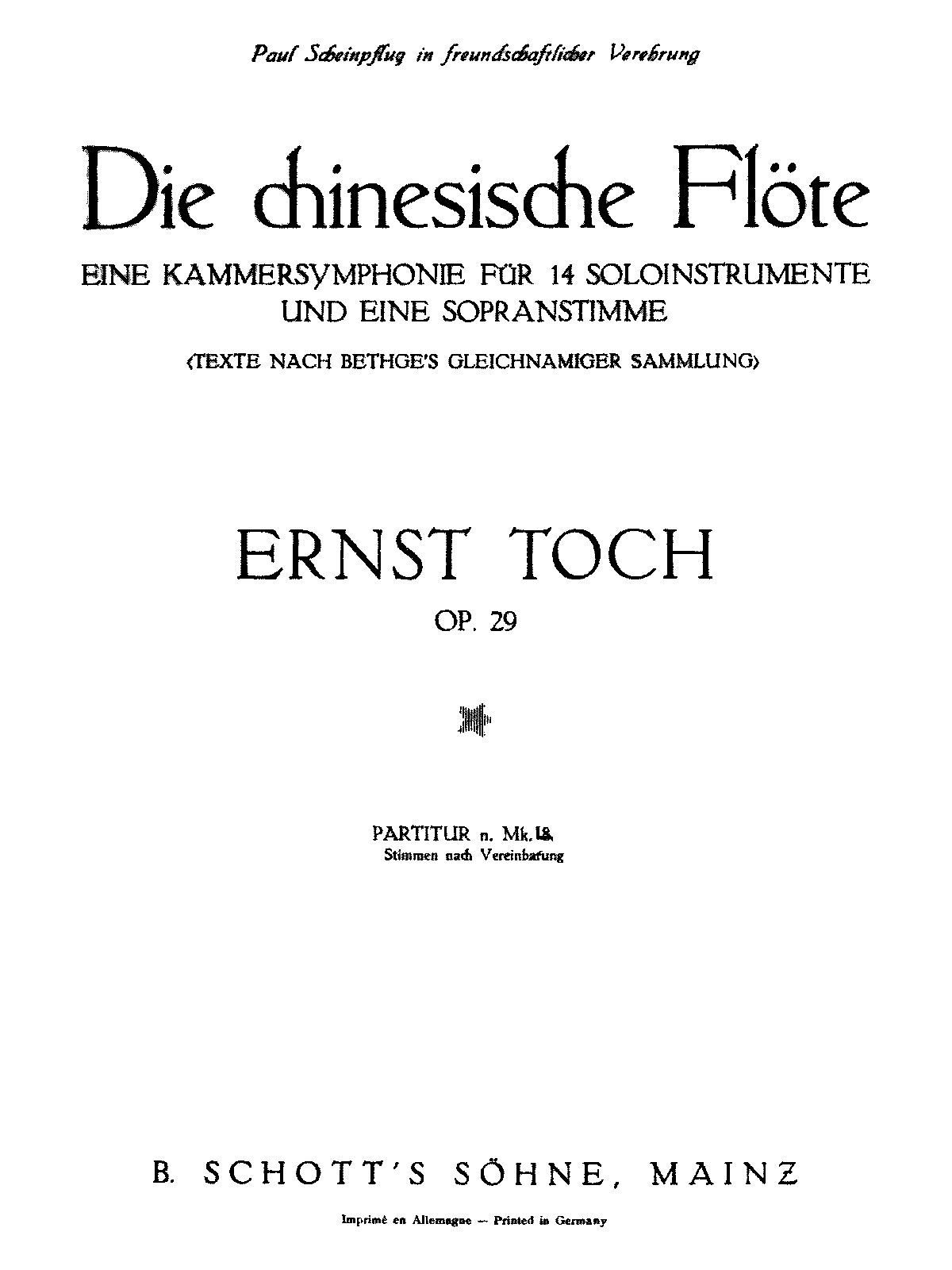 | Dedication | Paul Scheinpflug (1875–1937) in freundschaftlicher Verehrung |