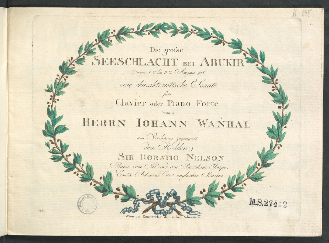 Die große Seeschlacht bei Abukir vom 1ten bis 3ten August 1798, eine charakteristische Sonate fürs Clavier oder Piano Forte . Battle of Abukir (Battle of the Nile)
