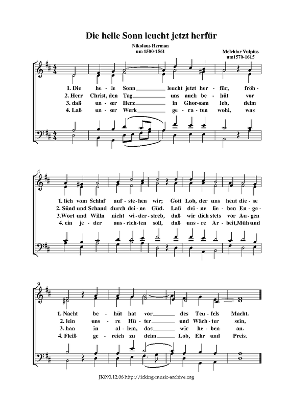 | Work Title | Die helle Sonn leucht jetzt herfür |