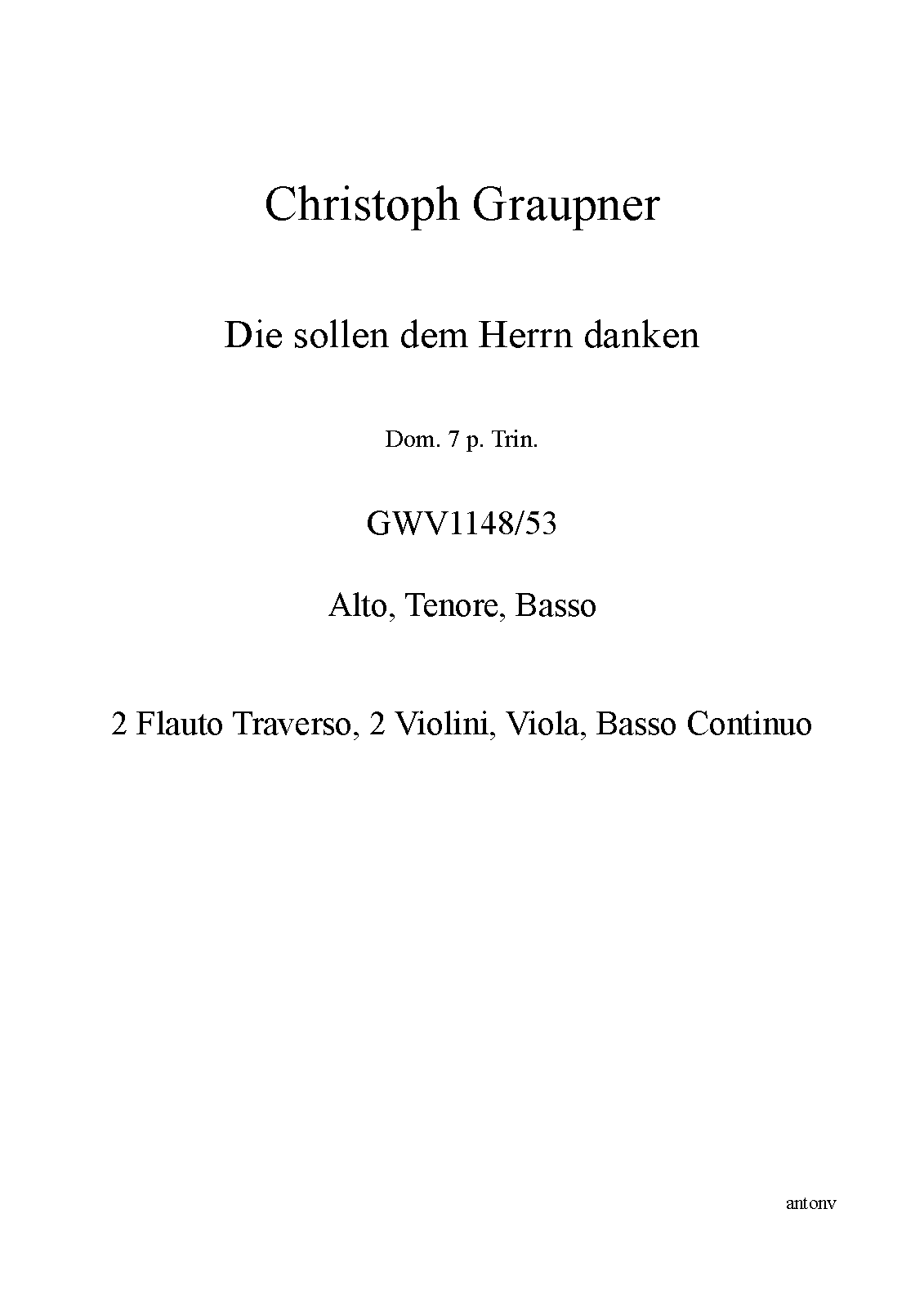 | Opus/Catalogue NumberOp./Cat. No. | GWV 1148/53 |