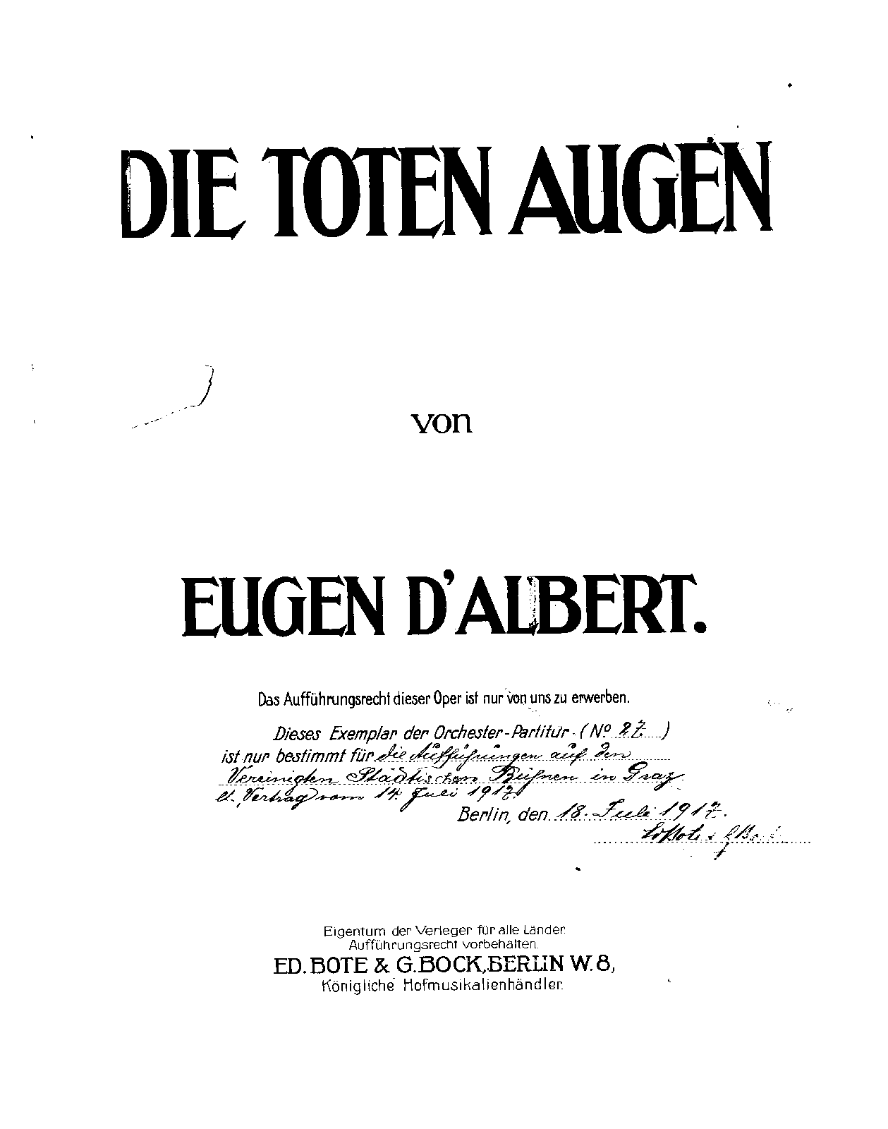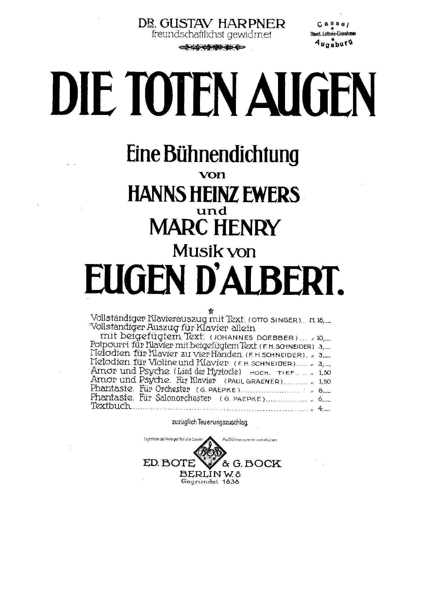 | Name Aliases | Die Toten Augen; Les Yeux morts |