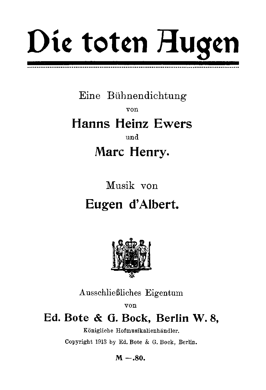 | Librettist | Hanns Heinz Ewers (1871-1943) Marc Henry - pseudonym for Achille Georges d'Ailly-Vaucheret (1872-1943) |