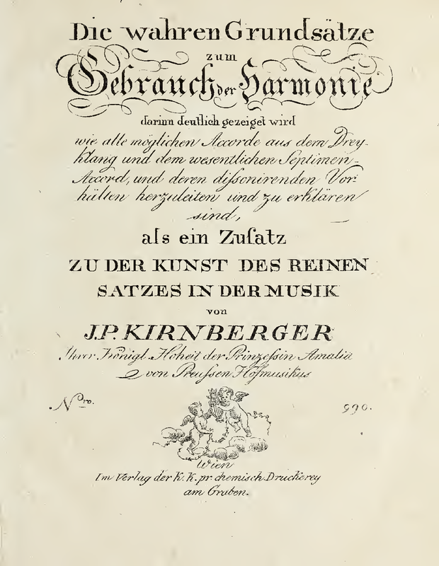 | Alternative. Title | Die wahren Grundsätze zum Gebrauch der Harmonie, darinn deutlich gezeiget wird wie alle moeglichen Accorde aus dem Dreyklang und dem wesentlichen Septimen-Accord, und deren dissonirenden Vorhaelten herzuleiten und zu erklaeren sind, als ein Zusatz zu Der Kunst des reinen Satzes in der Musik |