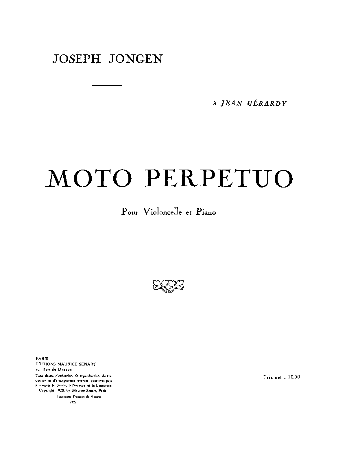 | Dedication | 1. Pour Madame Paul Noblet 2. à Jean Gérardy (1877–1929) |