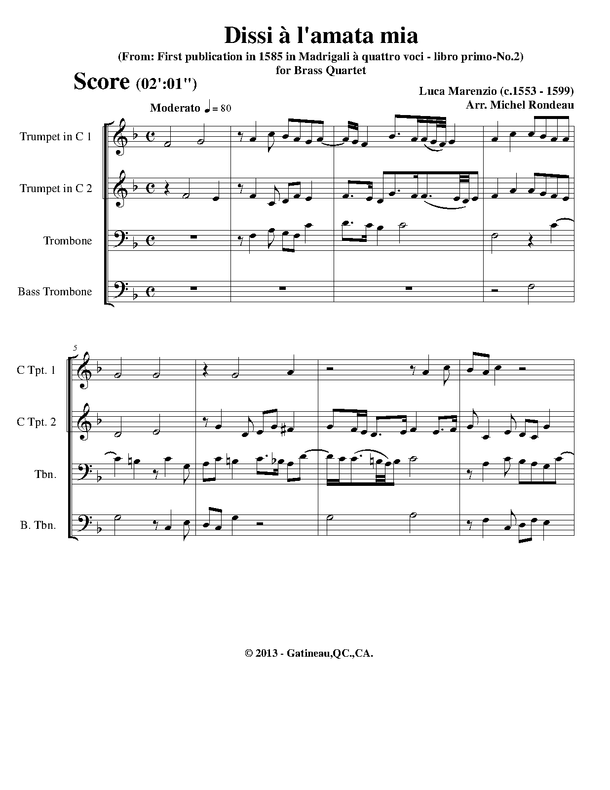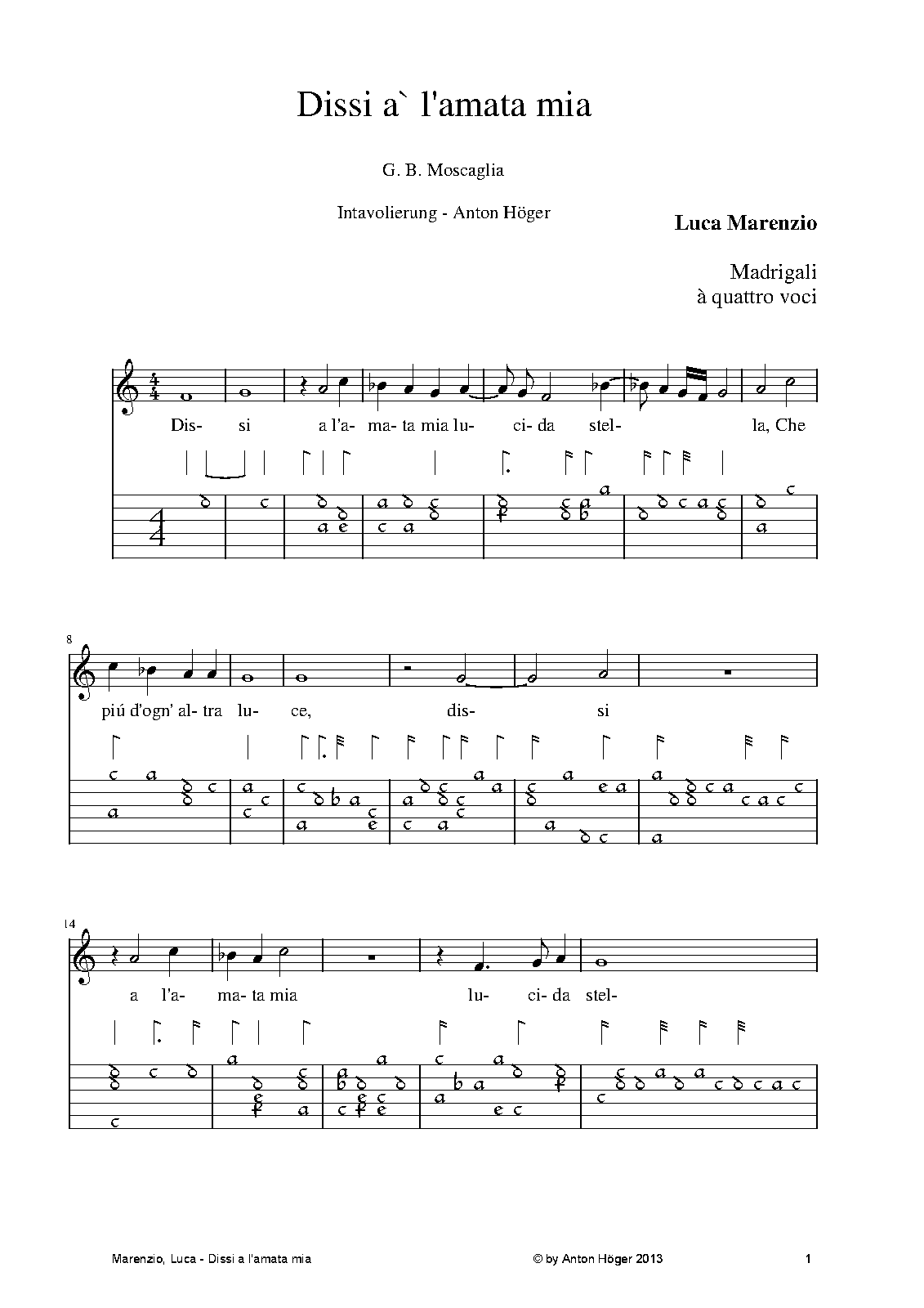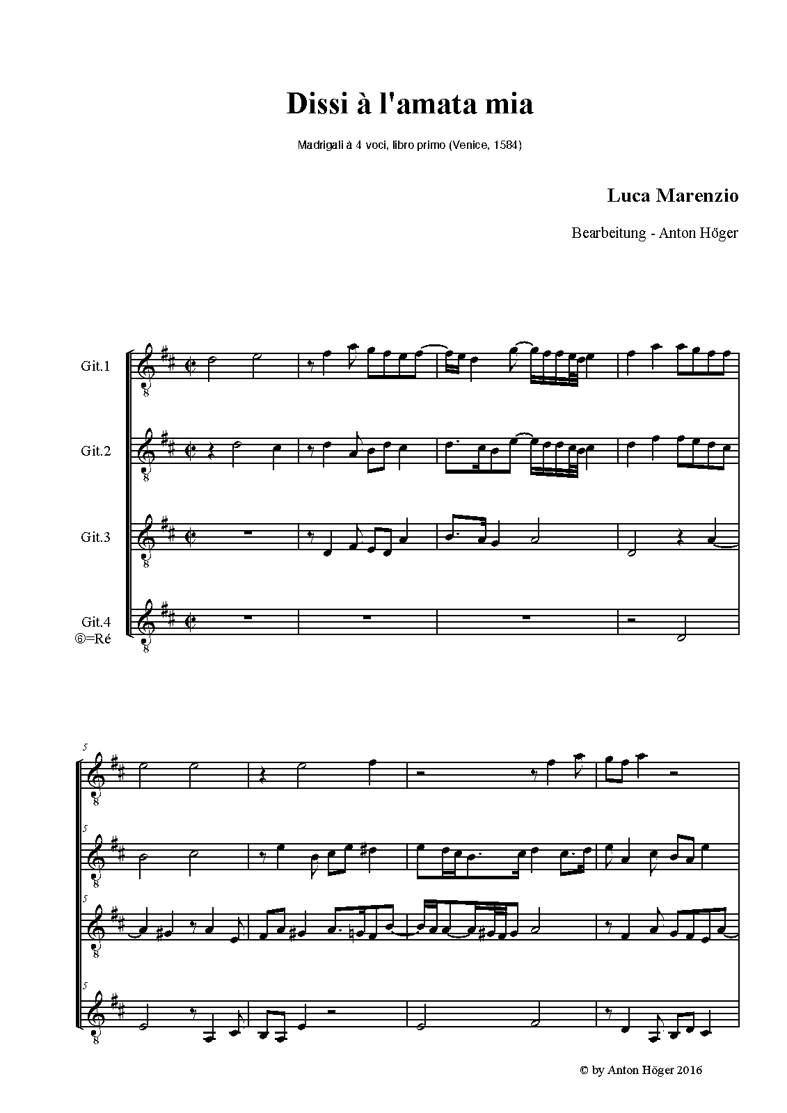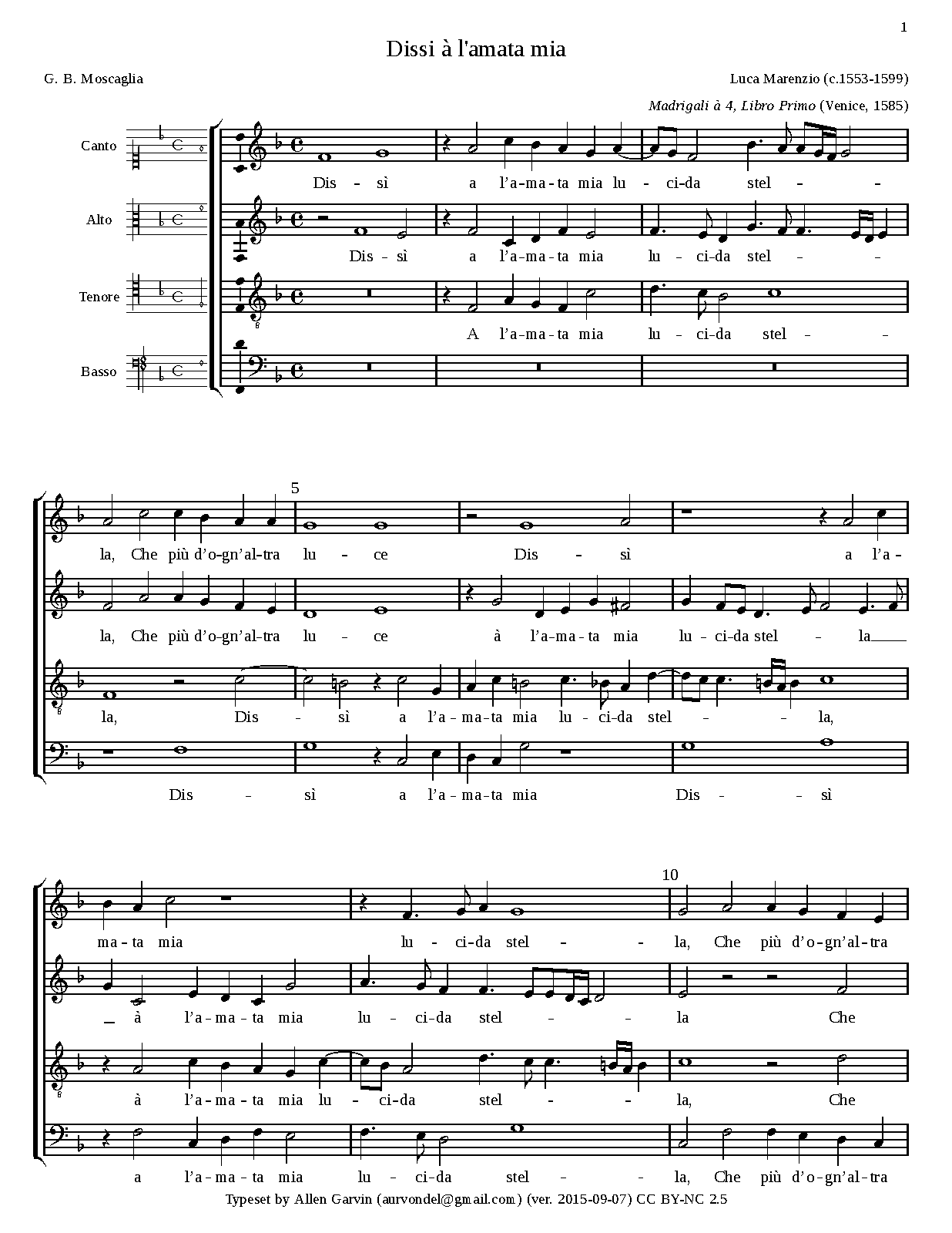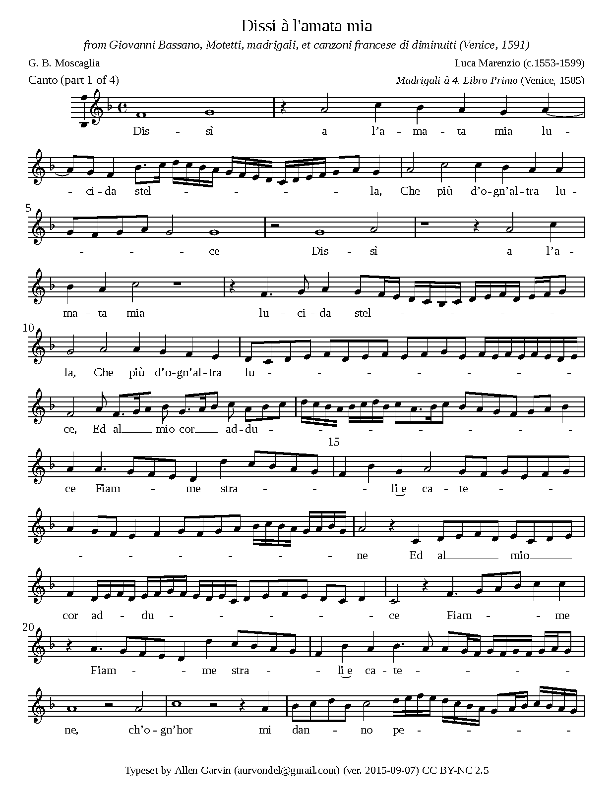| First Publication | 1585 in Madrigali a quattro voci, libro primo (No.2) |