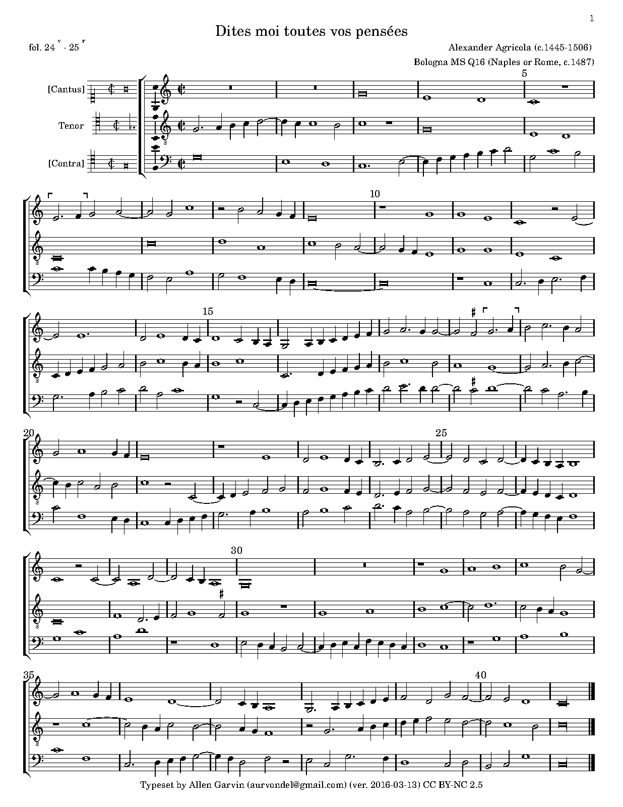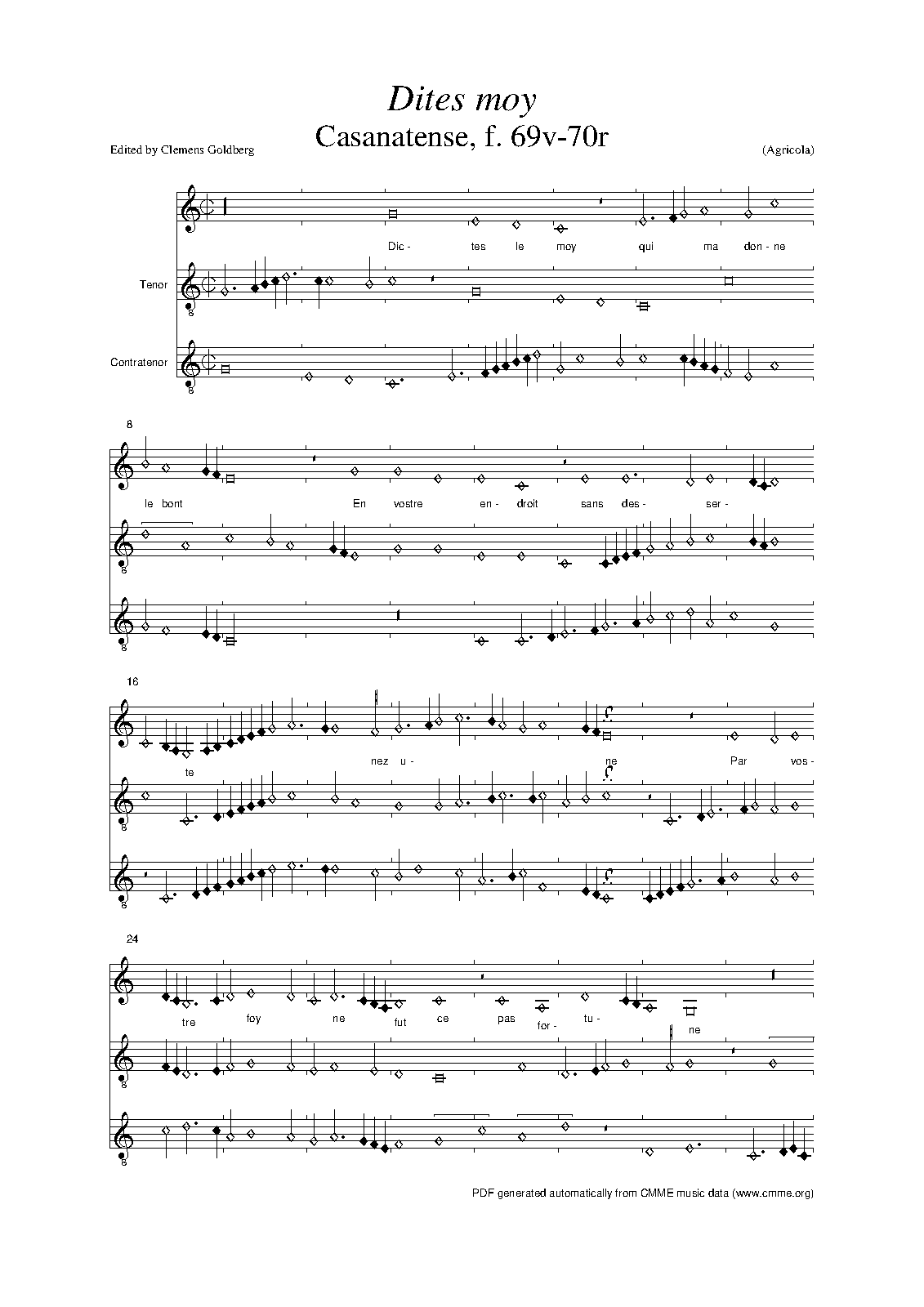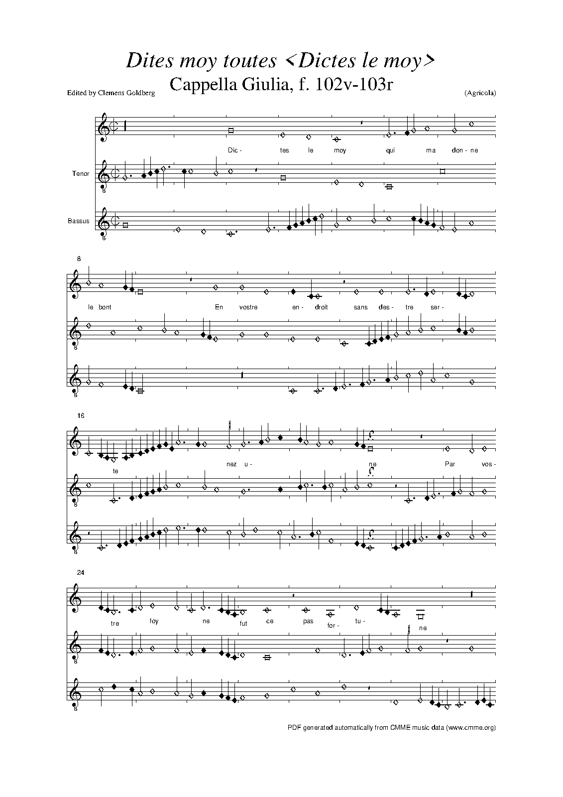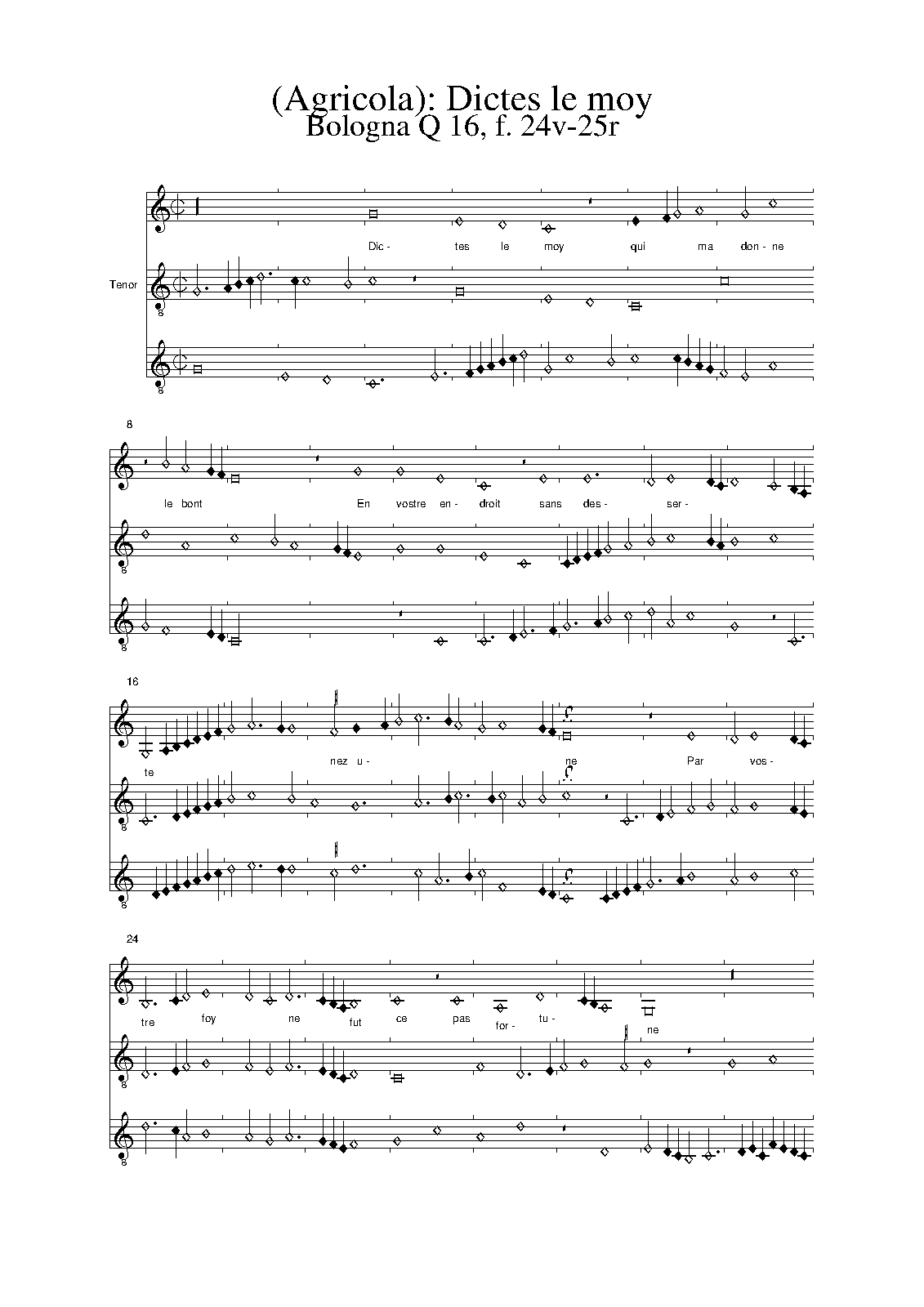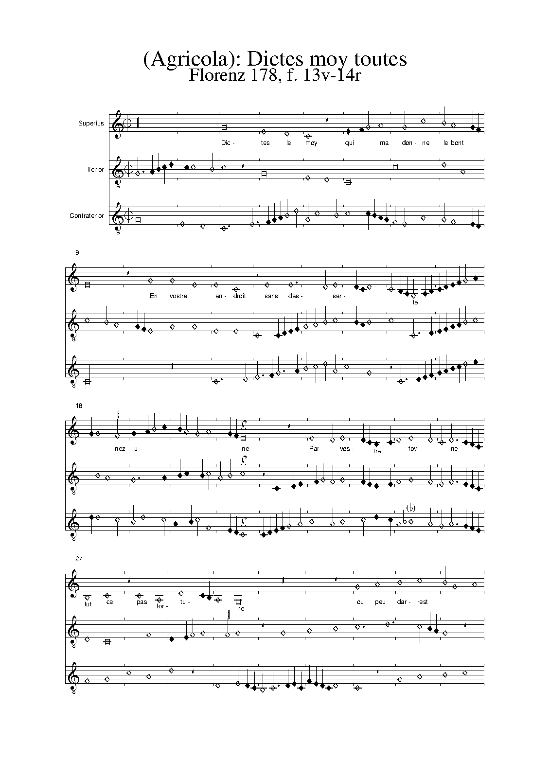 | Alternative. Title | Dictes le moy / Dites moi toutes vos pensées / Amice ad quid venisti [contrafacta versions] |