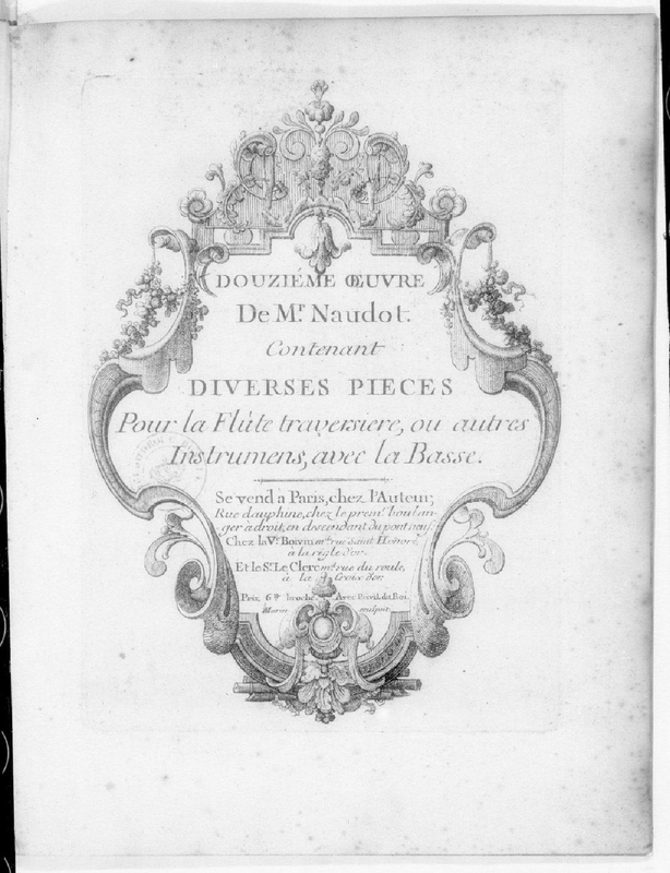 | Alternative. Title | Douzieme Oeuvre de Mr Naudot contenant Diverses Pieces pour la Flute traversiere, ou autres Instrumens, avec la Basse |