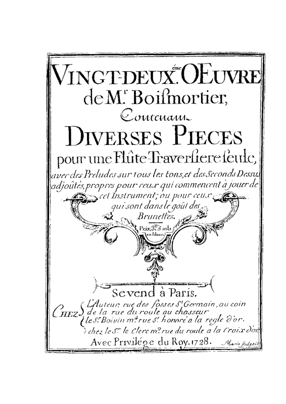 | Alternative. Title | Diverses Pièces pour une Flûte-Traversière seule, avec des Preludes sur tous les tons, des seconds dessus adjoutés, propre pour ceux qui commencent à jouer de cet instrument; ou pour ceux qui sont dans le goût des Brunnettes. |