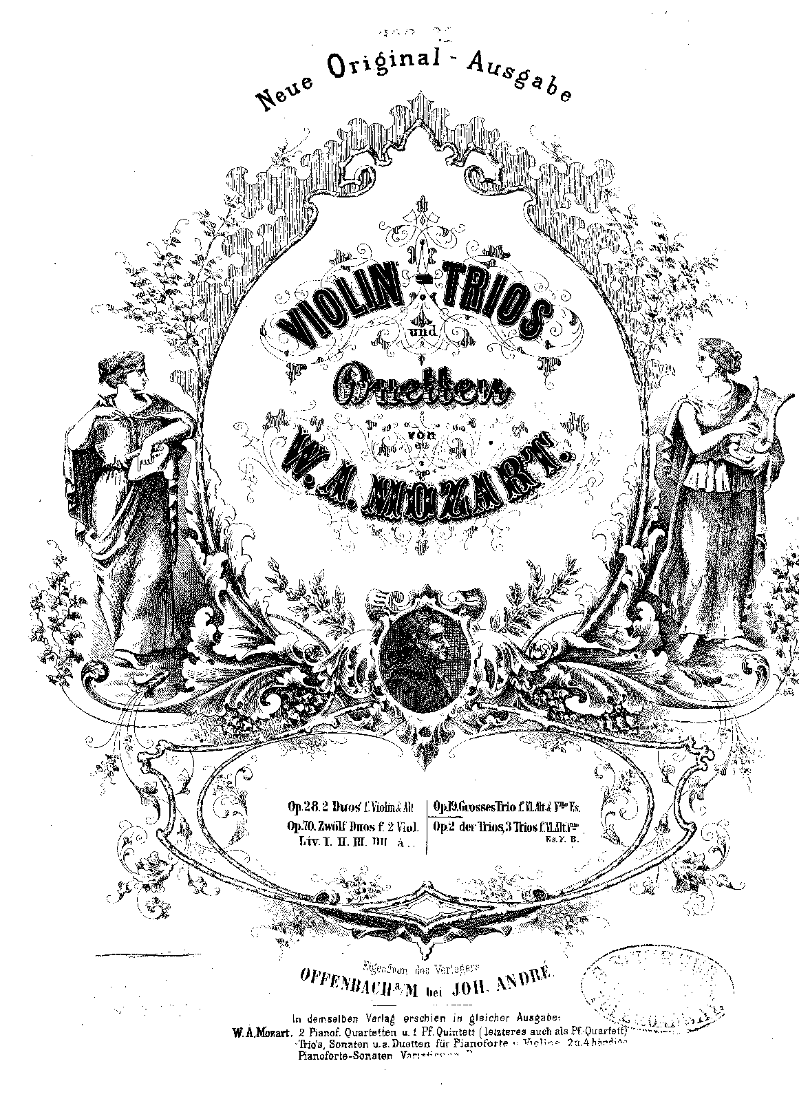 Oddly, in November 1801 AMZ announced from Breitkopf 3 string trios by Mozart, a "2nd" opus of his trios; arrangements, one suspects, mostly at least (perhaps also containing this work as well), but otherwise of what? (AMZ November 1801 Intelligenzblatt, p.11.) (Of course, piano trios might have been what were meant- one often sees this typo. Even though the typo usually takes the form string trios for piano trios, not "viol., A. et violoncelle" as here.)