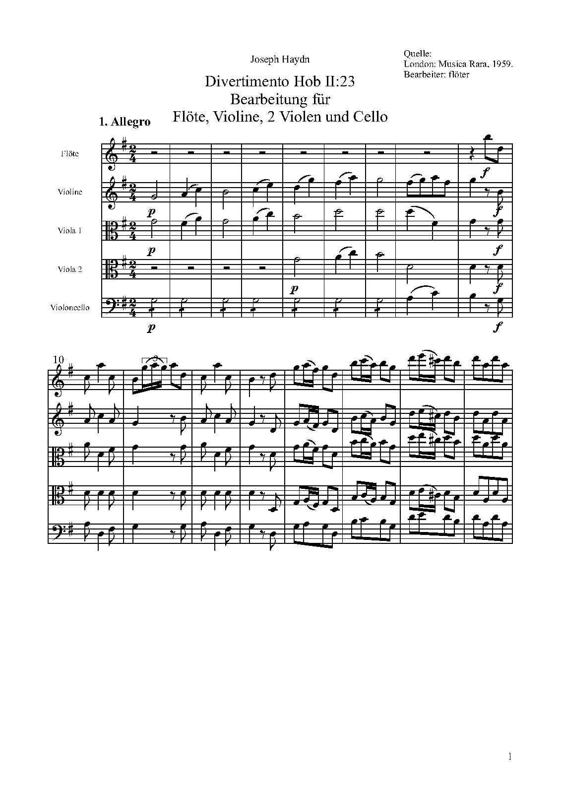 Divertimento in D major, Hob.II:D9 (Flute Quartet no.1)