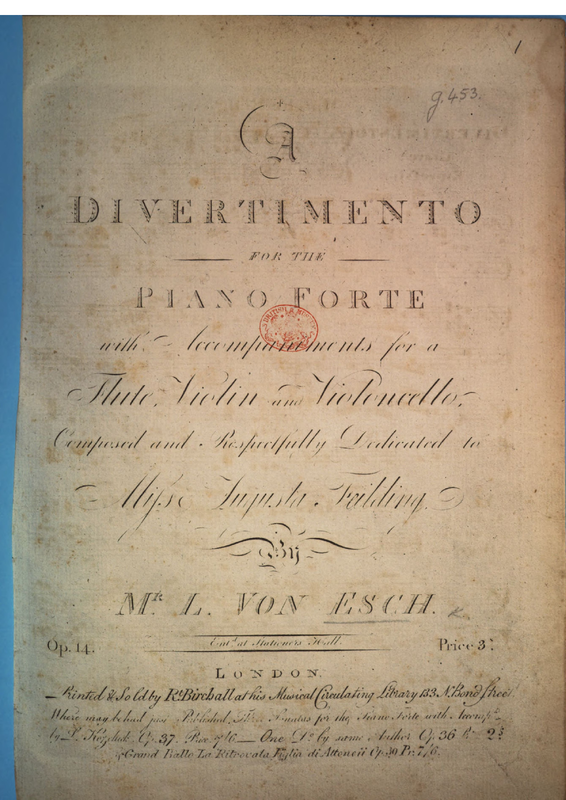 | Alternative. Title | A Divertimento for the Piano Forte with Accompaniments for a Flute, Violin and Violoncello |