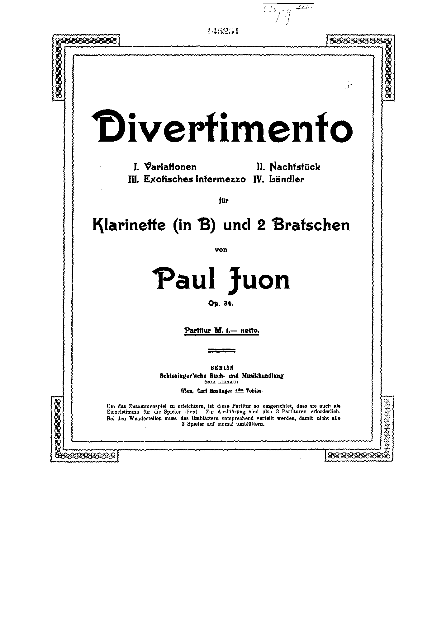 | Work Title | Divertimento for Clarinet and Two Violas, Op.34 |