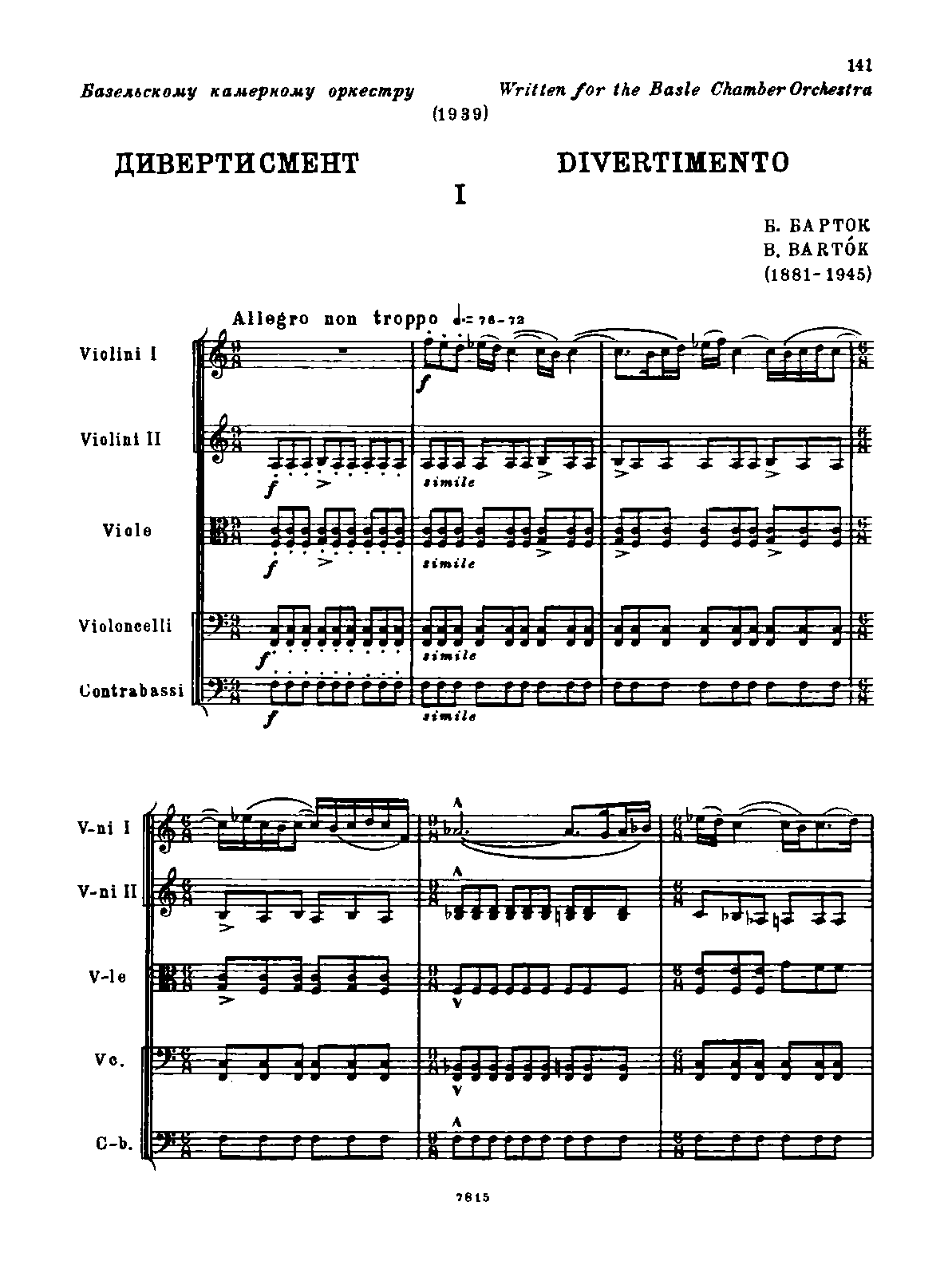 Name Aliases Divertimento for String Orchestra, BB 118; Divertimento for String Orchestra, Sz 113
