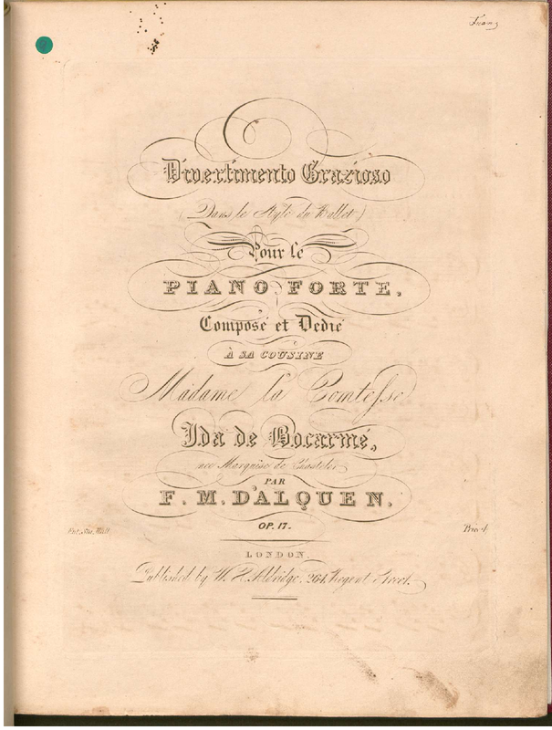 | Alternative. Title | Divertimento Grazioso (dans le style du ballet) pour le Piano Forte |