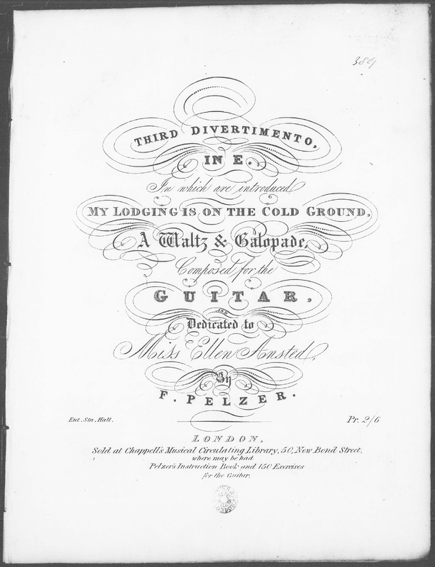 | Alternative. Title | Third Divertimento in E, in which are introduced "My Lodging is on the Cold Ground", a Waltz, & Galopade |