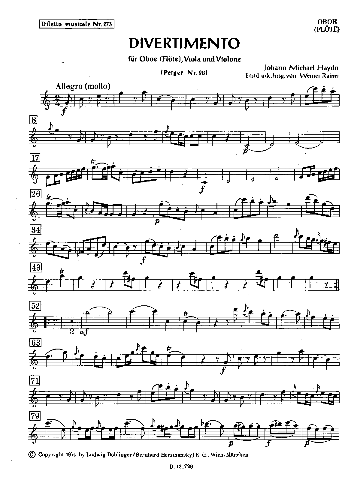 Diletto musicale, No.273 Vienna: Ludwig Doblinger, 1970. Plate D. 12.726.URTEXT EDITION