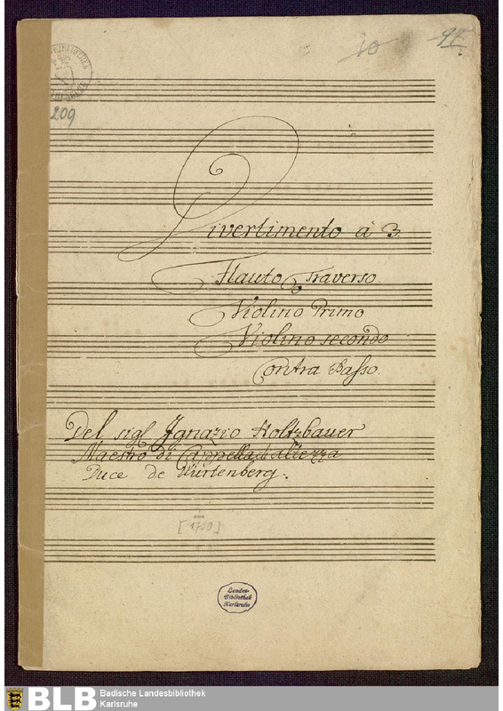| Genre Categories | Divertimentos; For flute, violin, continuo; Scores featuring the flute; |