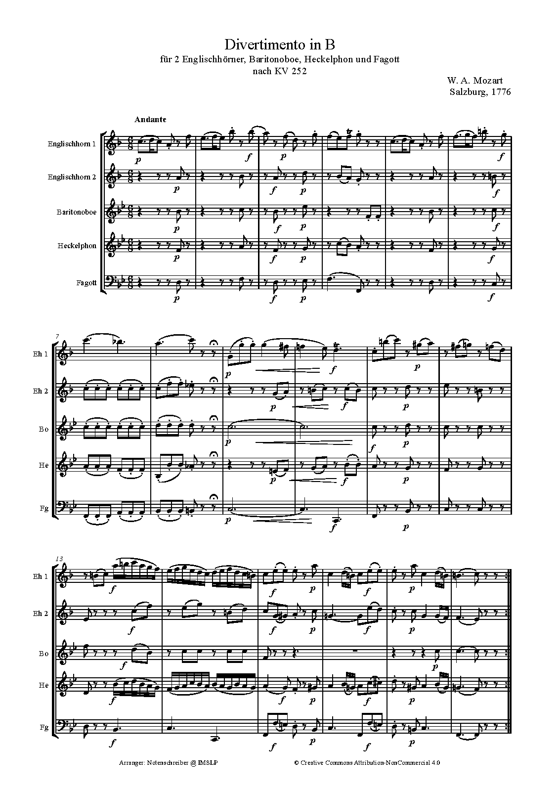 | Genre Categories | Divertimentos; For 2 oboes, 2 bassoons, 2 horns; Scores featuring the oboe; |