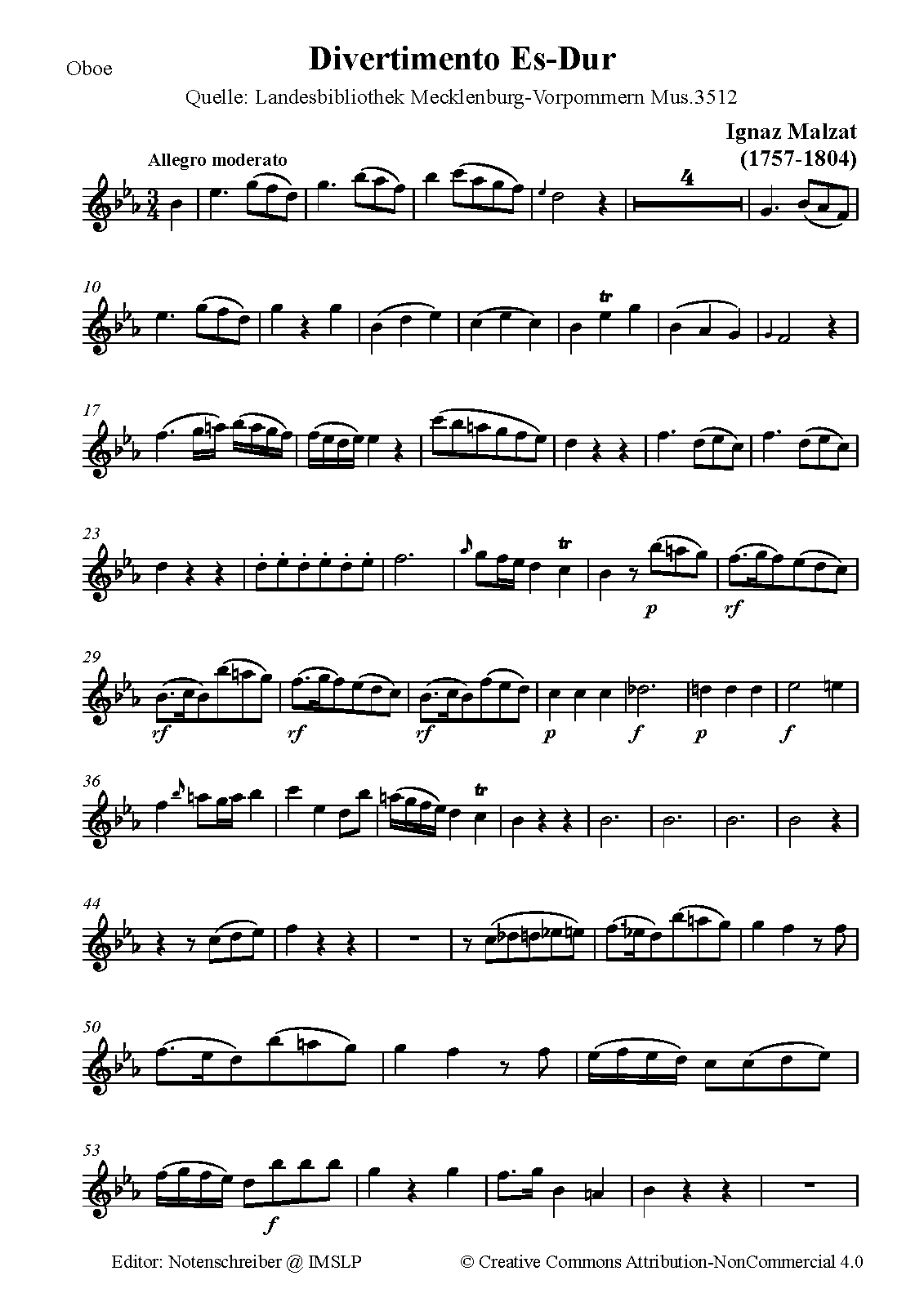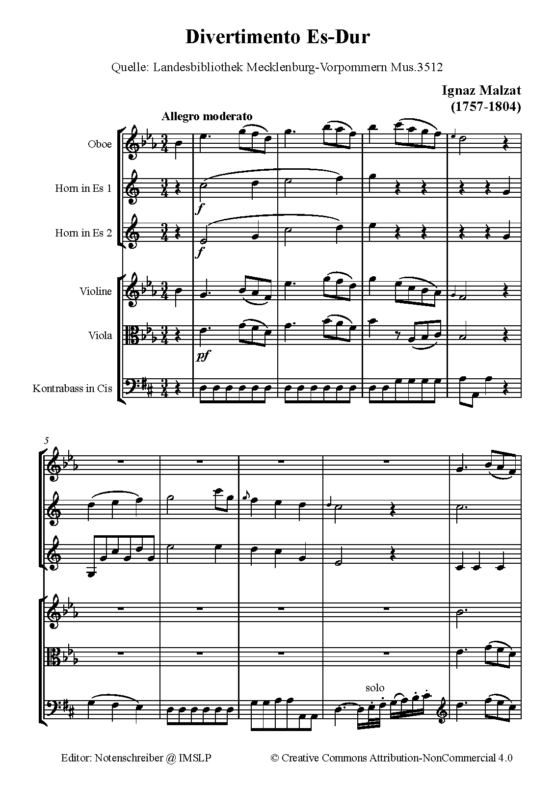 | Genre Categories | Divertimentos; For oboe, 2 horns, violin, viola, double bass; Scores featuring the oboe; |