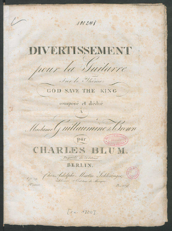 | Alternative. Title | Divertissement pour la Guitarre sur le Theme God Save the King; Variations sur le Theme God Save the King |