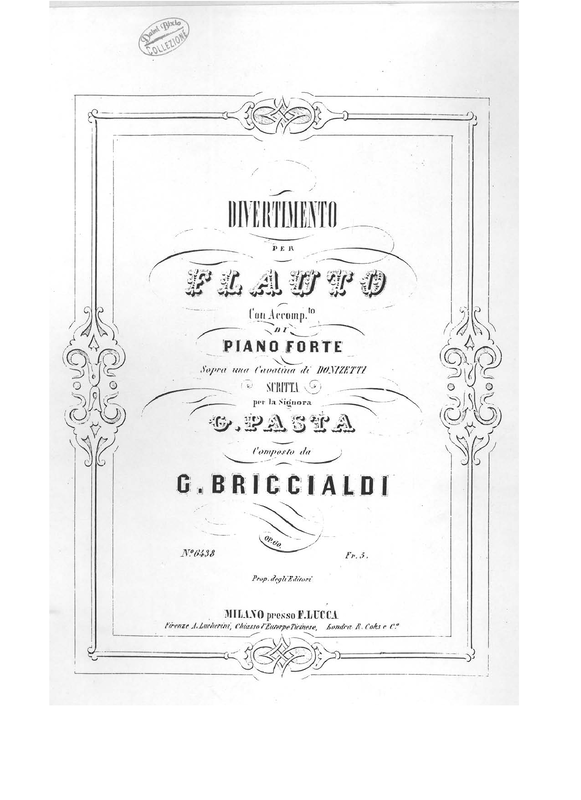 | Alternative. Title | Divertimento per flauto con accomp.to di pianoforte sopra una cavatina di Donizetti scritta per la Signora G. Pasta |