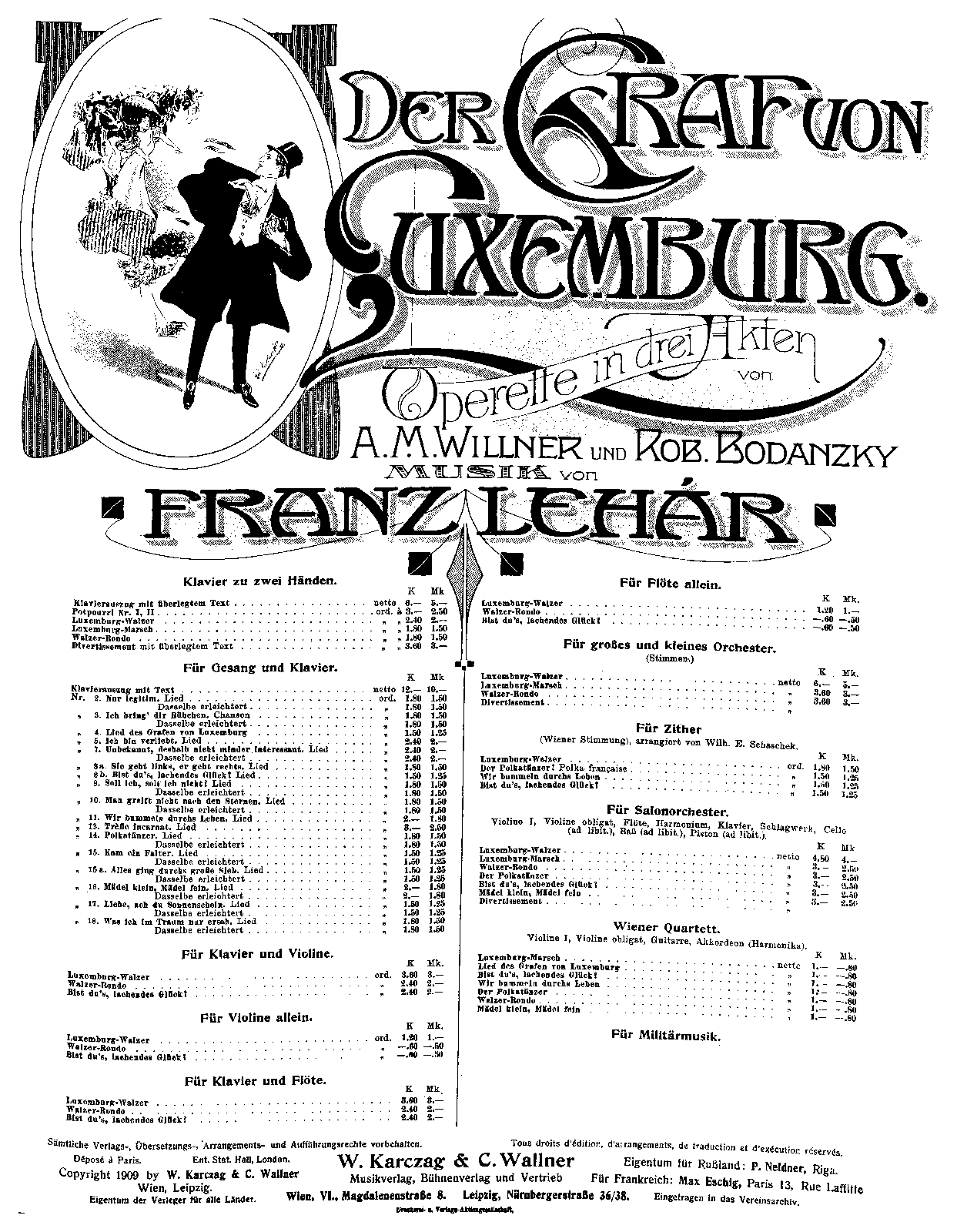| First Publication | 1909 – Vienna: Karczag & Wallner |