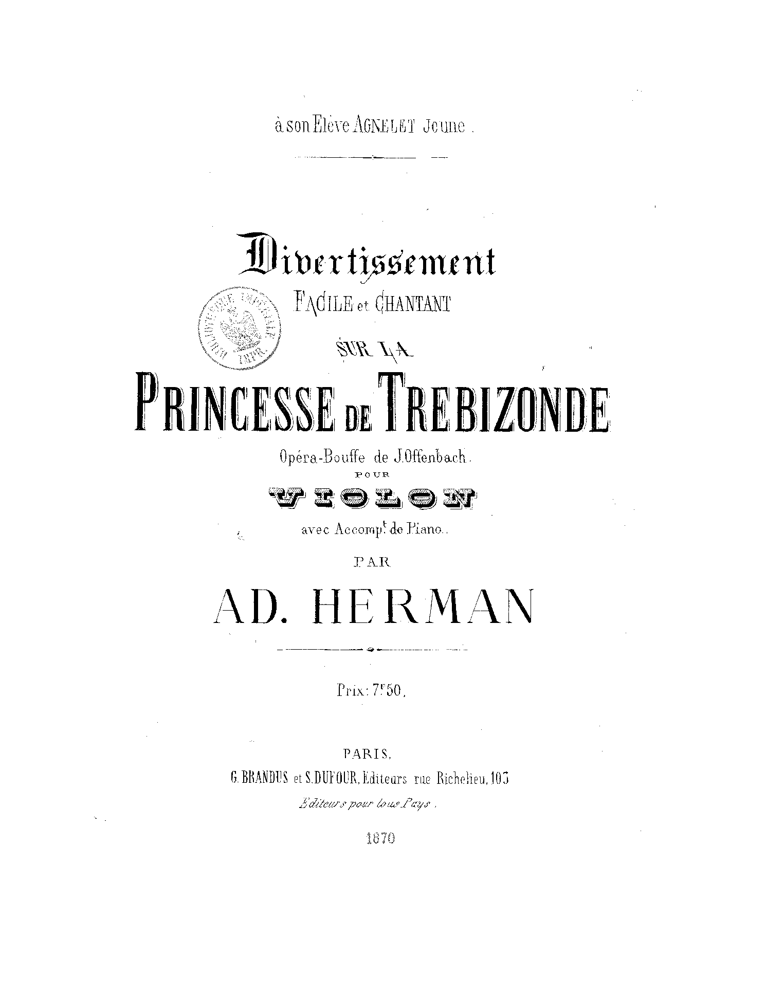 La princesse de Trébizonde. Opéra-bouffe de J. Offenbach. Divertissement facile et chantant.