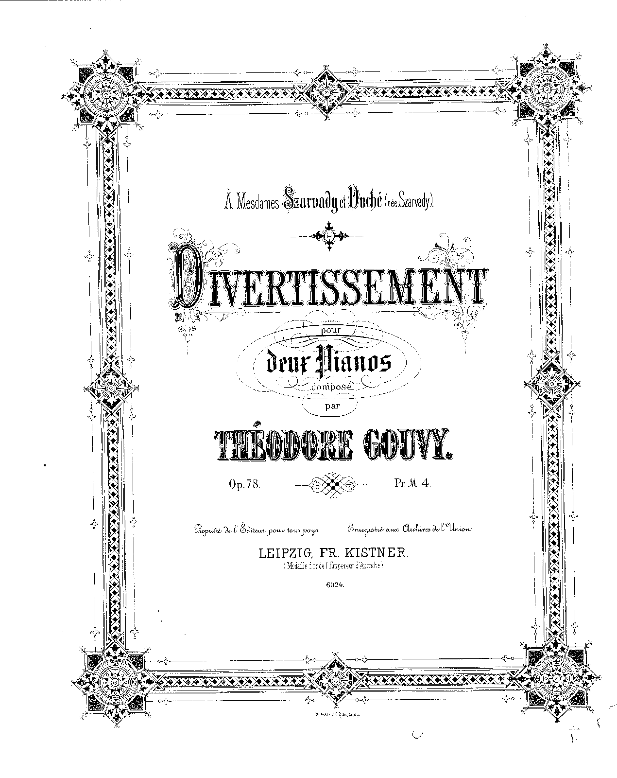 | Extra Information | According to the Gouvy Institute work catalogue, all of Gouvy's music for 2 pianos dates from between 1875 and 1879 (in composition). - Schissel |