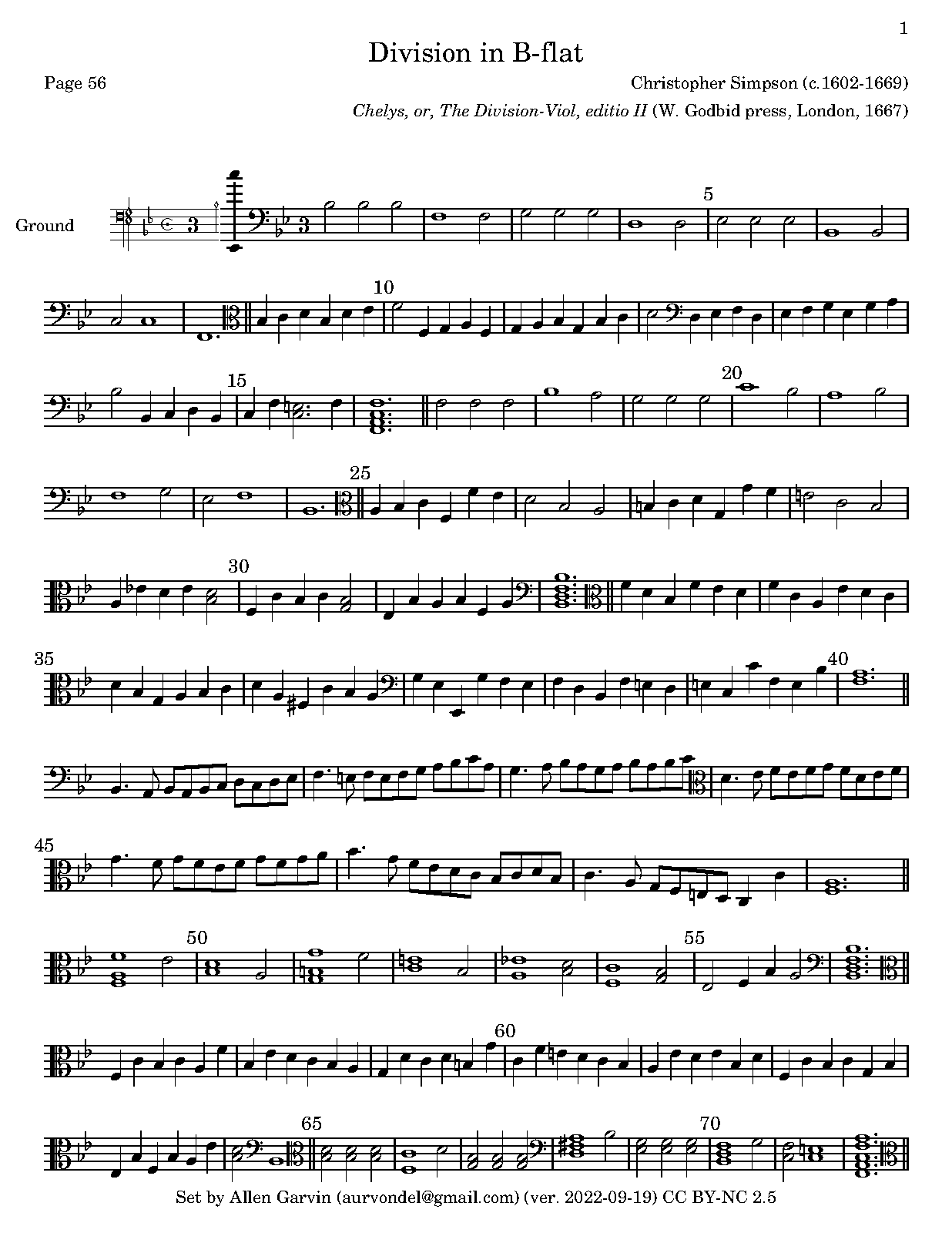 | First Publication | 1667 in Chelys, or, The Division-Viol (2nd edition, page 56) |