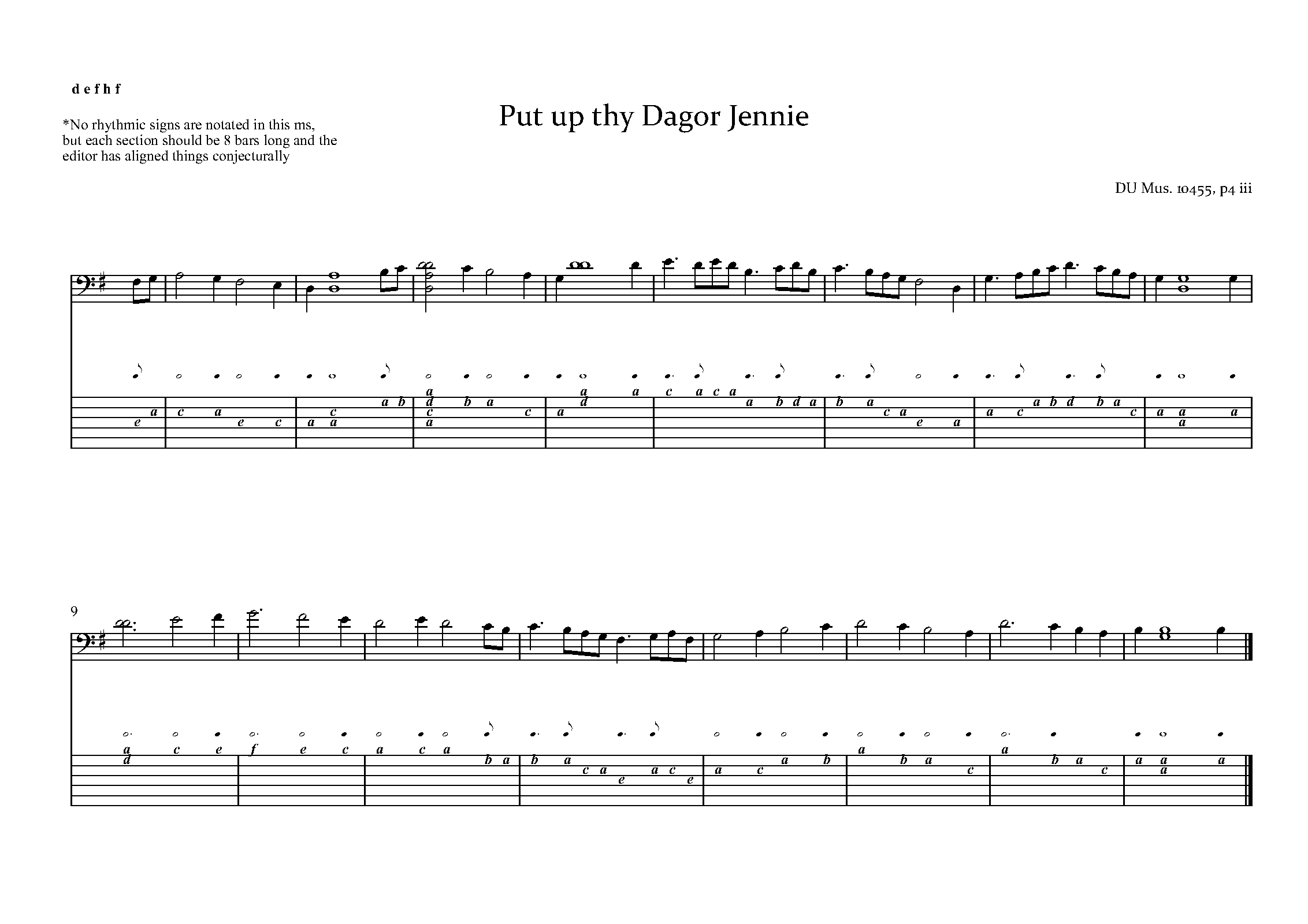 Complete Score (as "Put up thy dagor, Jennie", GB-DU Mus 10445)