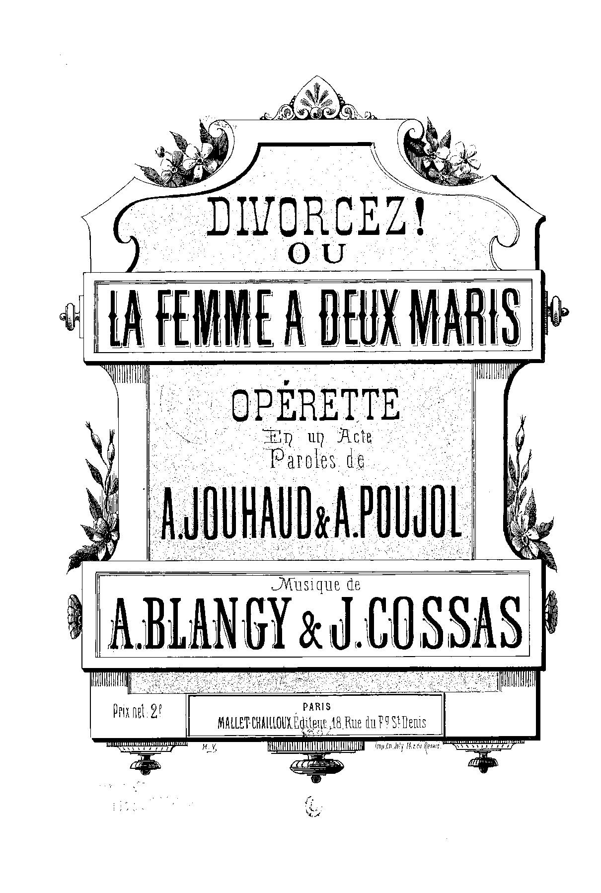 | Work Title | Divorcez!, ou La femme à deux maris |