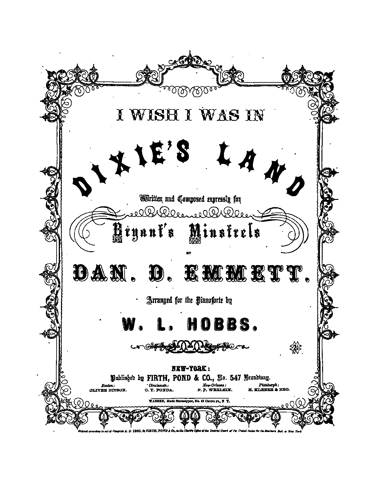 | Alternative. Title | I Wish I Was in Dixie's Land |