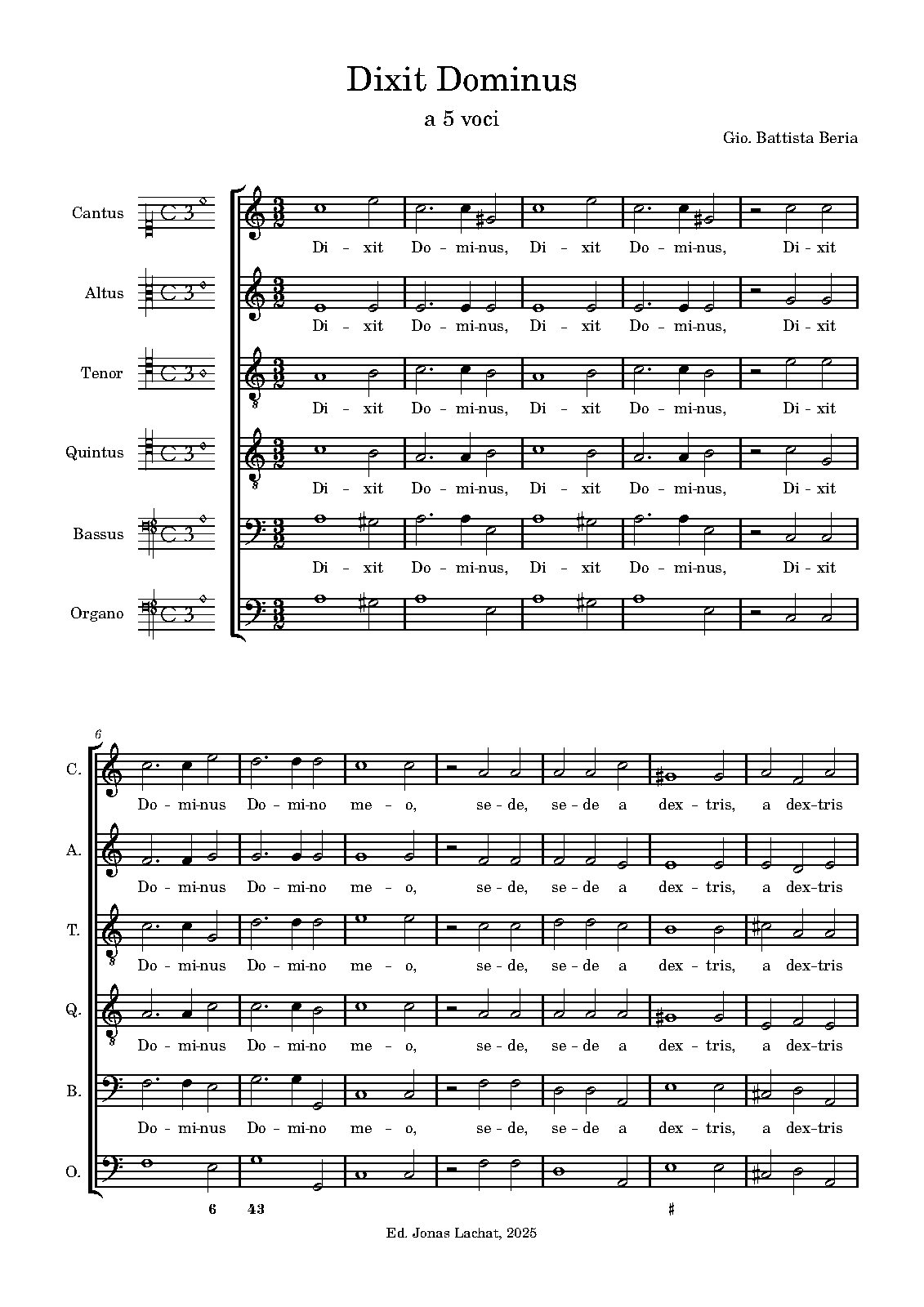 | Extra Information | From the collection: Giovanni Battista Beria, Concerti musicali, messa, salmi a cinque e a tre voci per le domeniche, feste della B. V. e delli apostoli con Litanie, e motetto a 5., libro primo, opera IV, Milano, fratelli Camagni, 1671 (RISM A/I B 2029, ID No.990004821). |