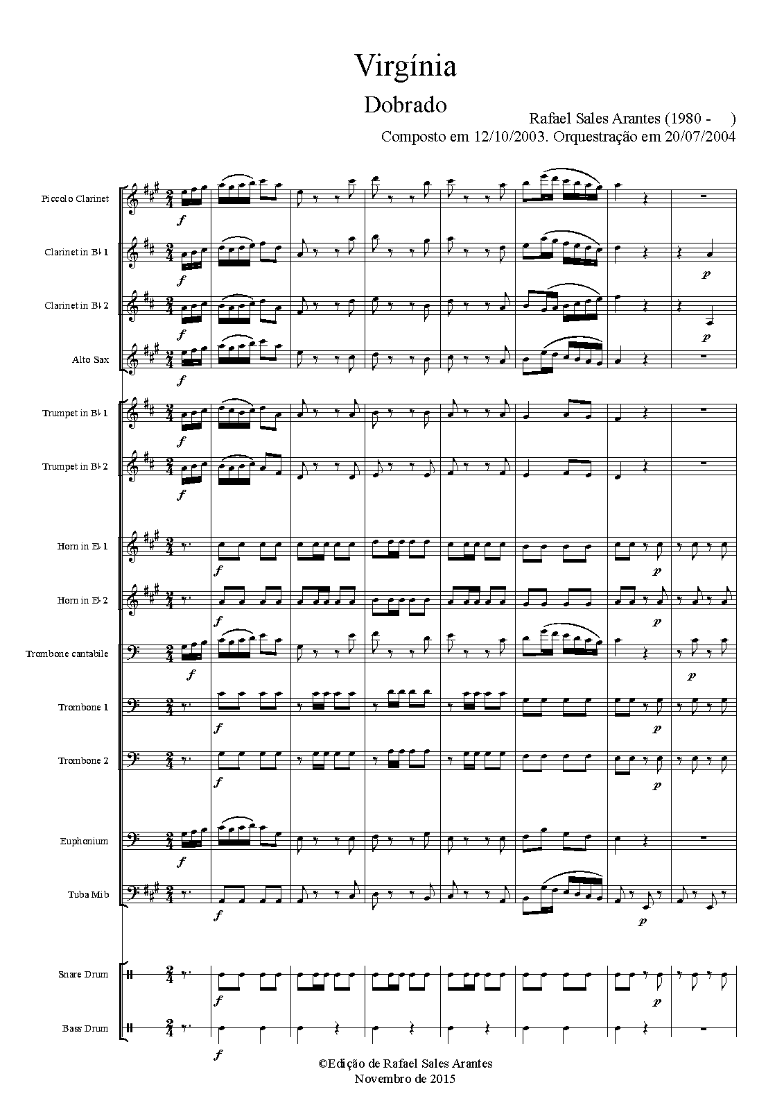 Wind Ensemble: piccolo clarinet, clarinet 1/2, trumpet 1/2, alto sax, horn 1/2, trombone 1/2/3, euphonium, tuba