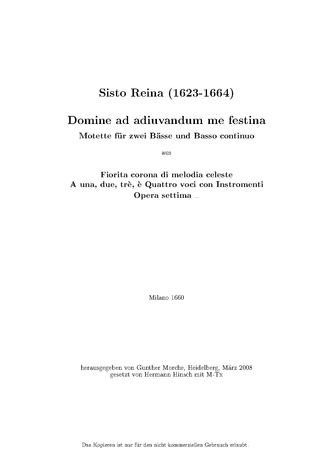 | Genre Categories | Motets; For 2 voices, continuo; For voices with continuo; |