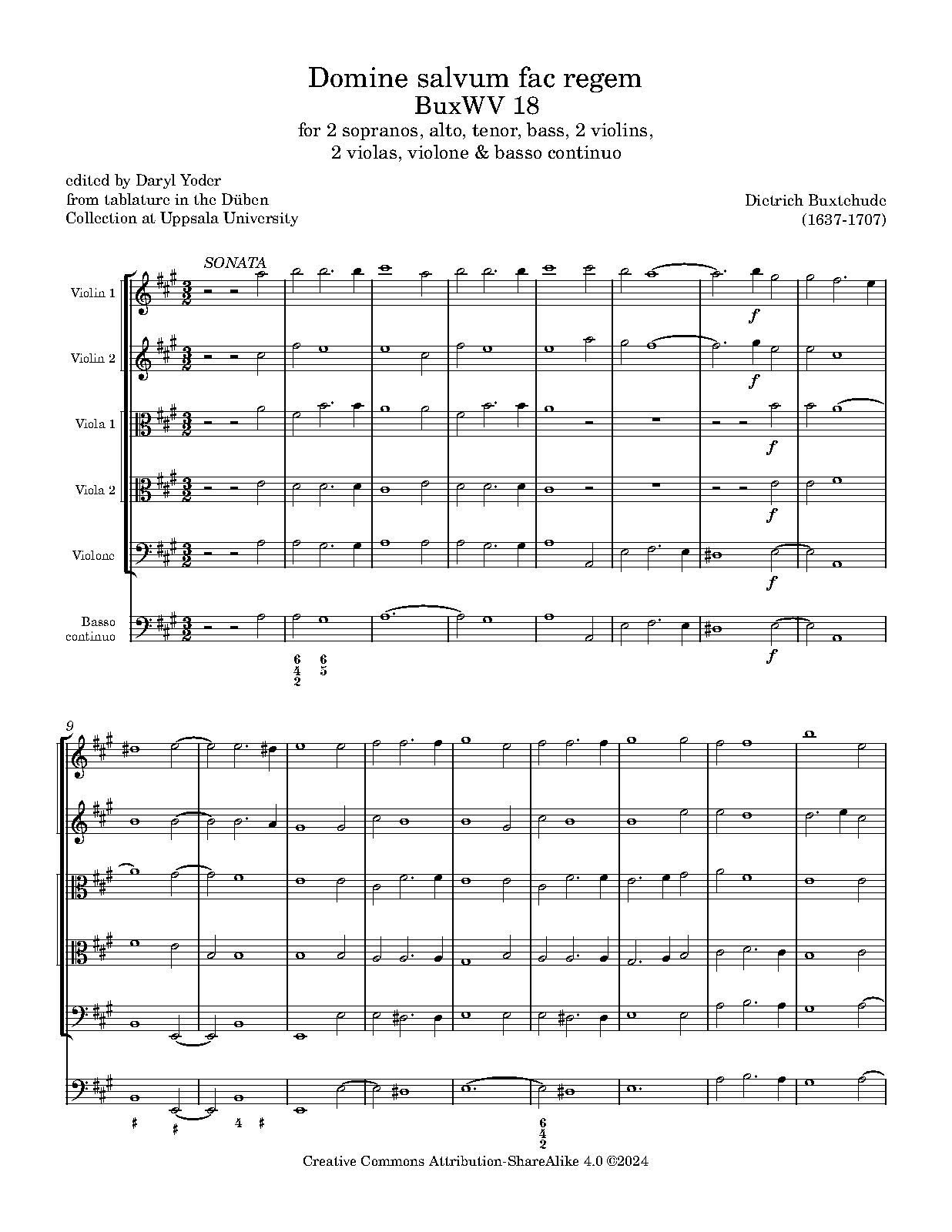 | Instrumentation | 5 voices (SSATB), 2 violins, 2 violas, violone, continuo |