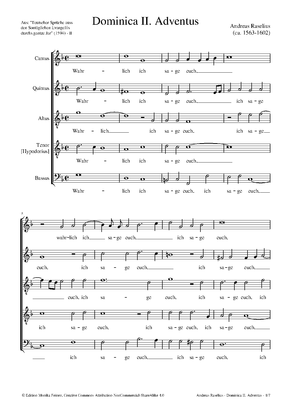 | First Publication | 1594 in Teutscher Sprüche auss den Sontäglichen Evangeliis durchs gantze Jar |