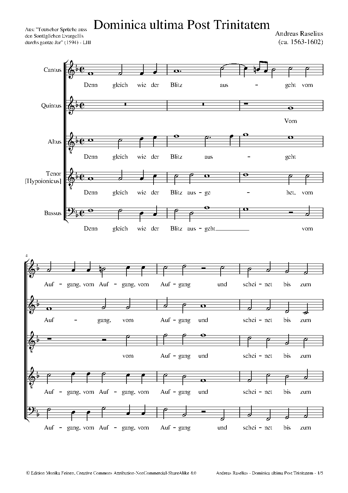 | First Publication | 1594 in Teutscher Sprüche auss den Sontäglichen Evangeliis durchs gantze Jar |