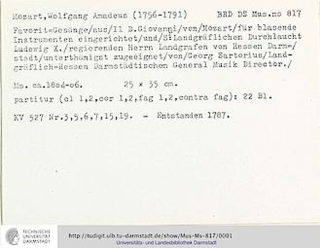 | Alternative. Title | Il dissoluto punito ossia il Don Giovanni |