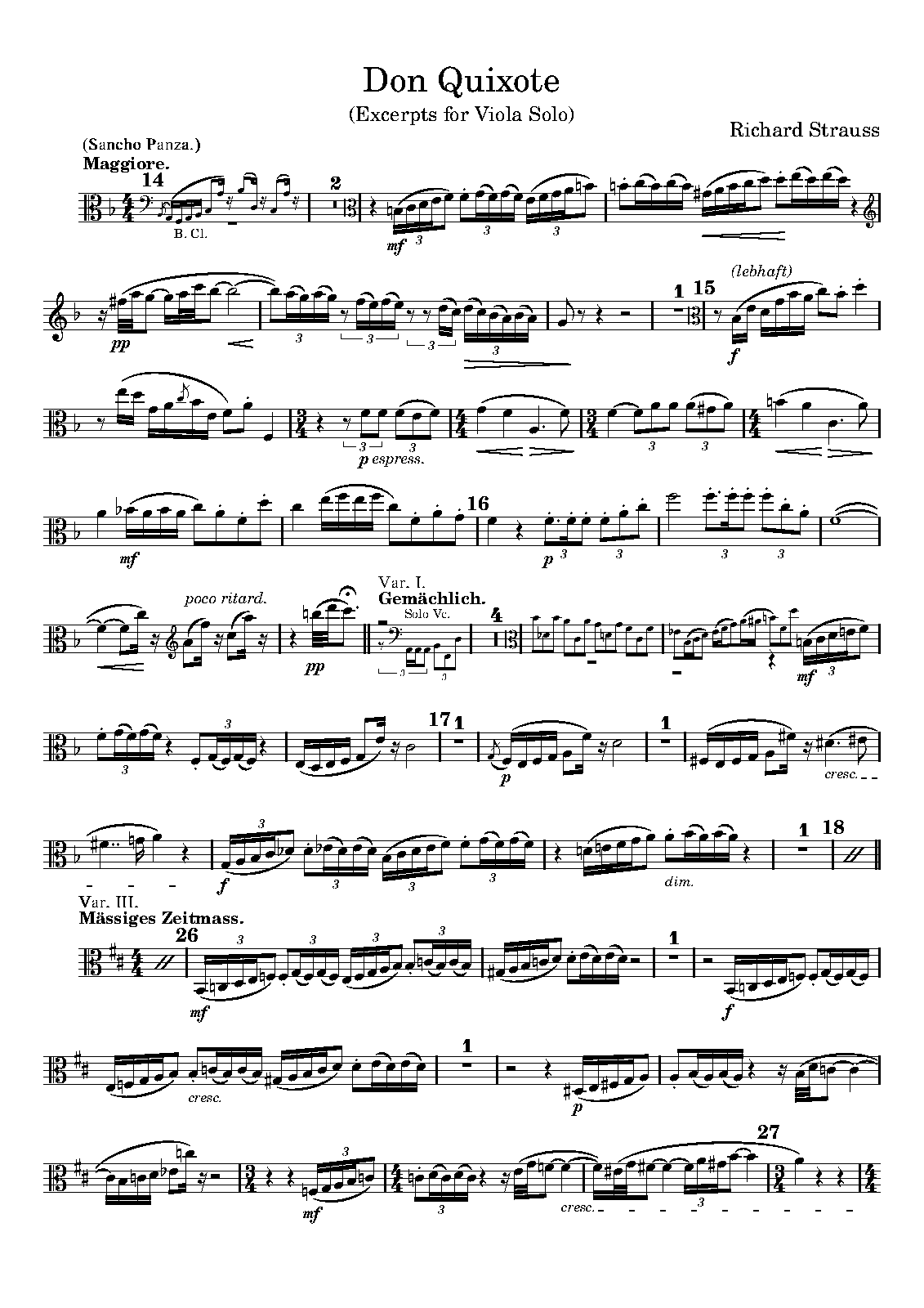 Misc. Notes Sancho Panza: Rehearsal number 14~18/Var. 3: 26~34/Var. 6: 53~56/Var. 8: 63~End/Var. 10: 72~74