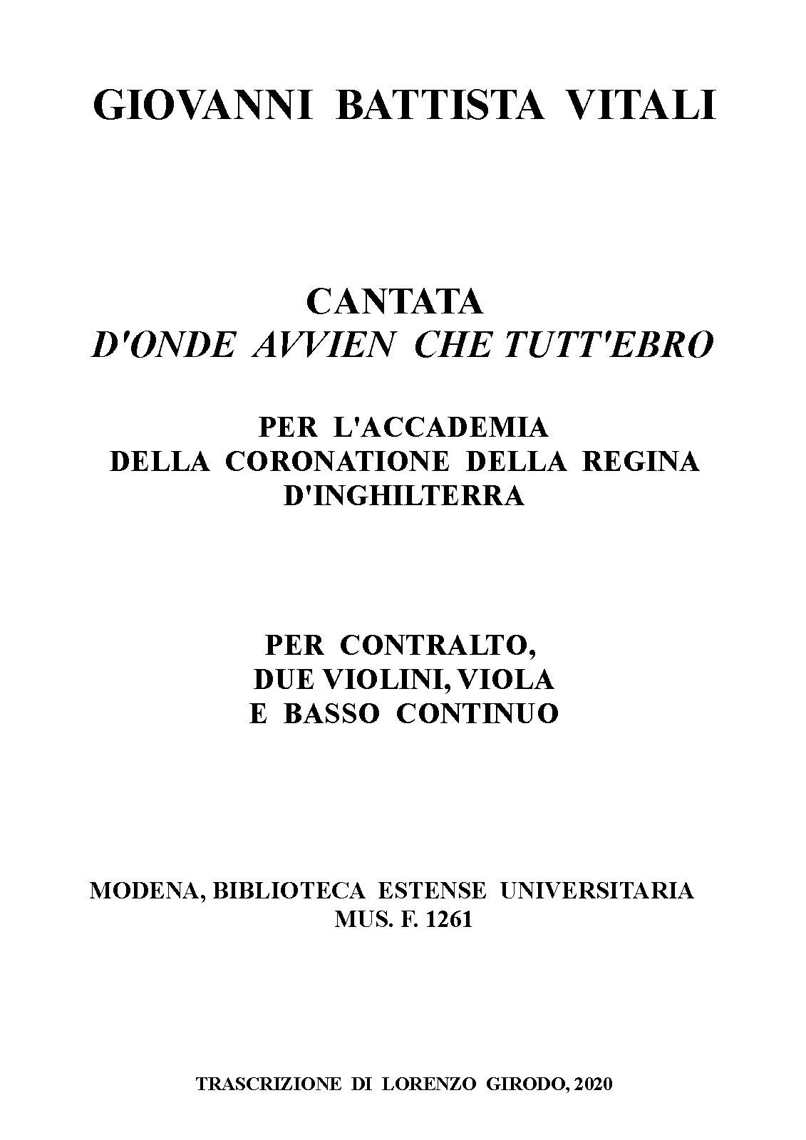 | Alternative. Title | Cantata per contralto, archi e basso continuo |